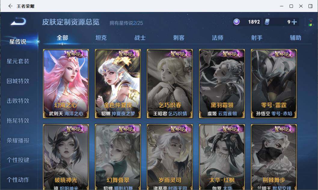 【荣耀典藏】:武则天英雄,孙悟空全息碎影,夏侯惇无限飓风号,小乔天鹅之梦,孙尚香杀手不太冷,鲁班七号星空梦想,芈月大秦宣太后,程咬金活力突击,李白鸣剑曳影