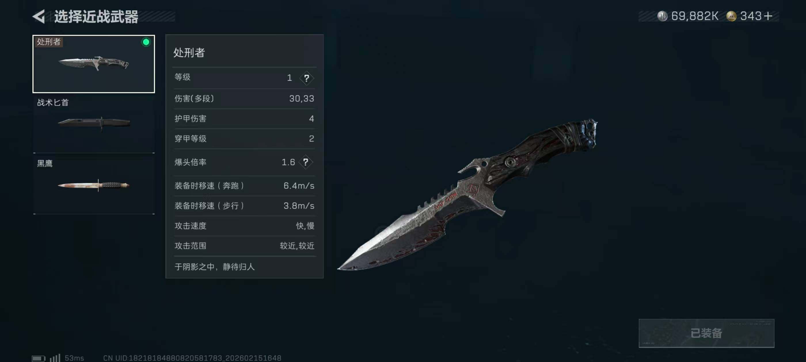 【近战皮肤】:近战-处刑者,近战-黑鹰