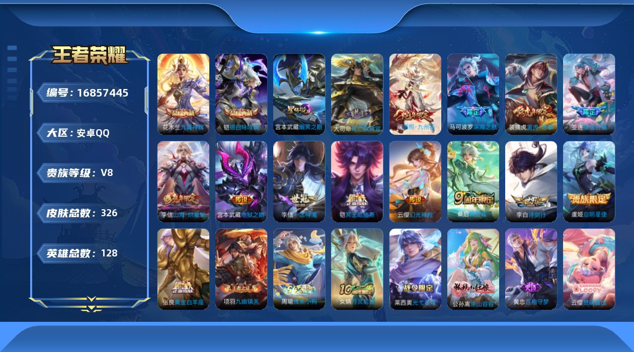 [16857445]安卓Q-V8-326皮肤-2典藏皮肤-15传说-102史诗