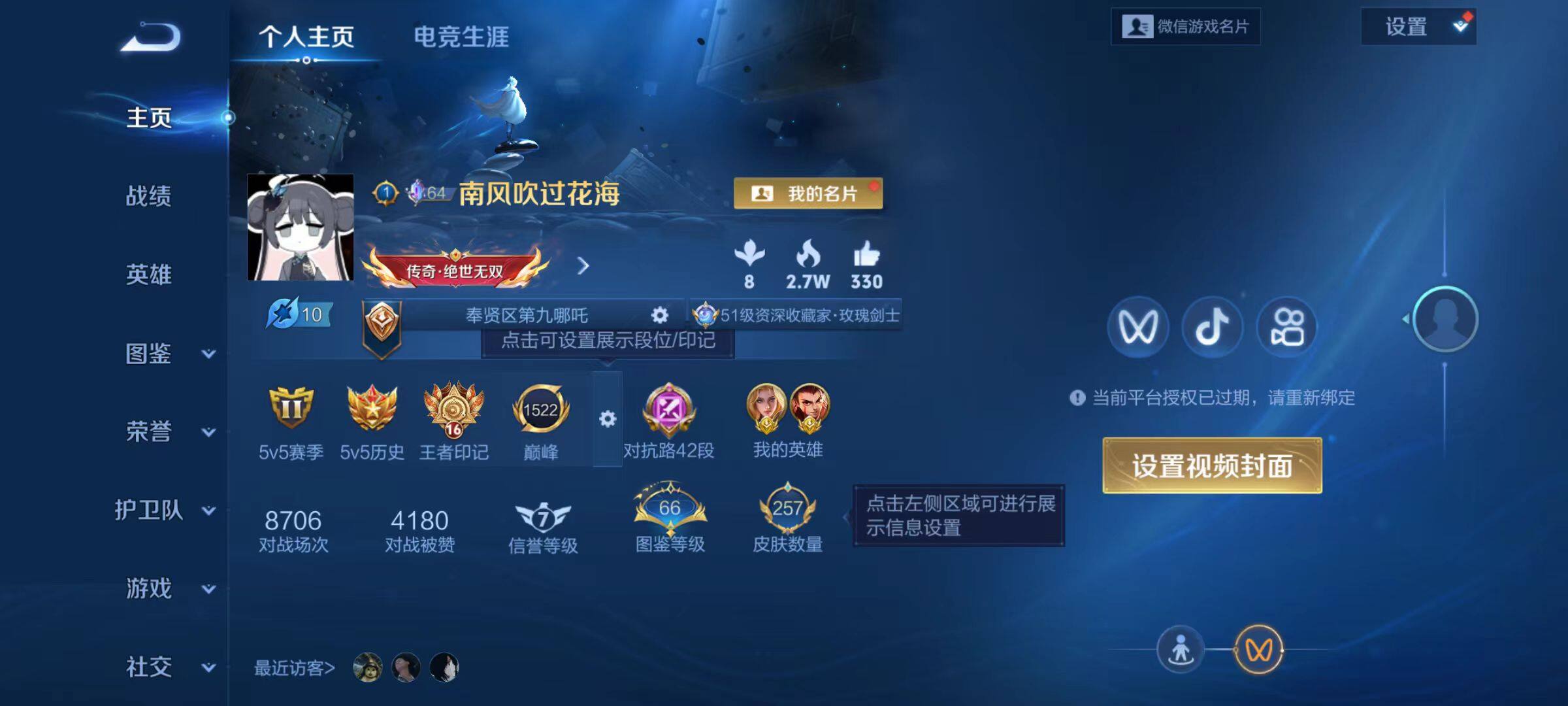 - PX_2095242-安卓q-有二次-贵8-123英雄-334皮肤-1典藏-1星元-11传说-89限定-路在脚下天幕-9按键-【热皮:赤影疾锋✦逐花归海✦幻光神枪✦愿照山河定✦鸣野蒿✦冰封战神✦青龙志✦玄武志✦启明星使✦山海玄木吟✦山海炽霜斩✦岱宗✦齐天大圣✦傲雪梅枪✦引擎之心✦孙行者✦猪悟能✦神迹守卫钟馗✦星空之诺✦冰冠公主✦绛天战甲】【亮点:打野27段】-贵族积分6.3w-营地ID:18836