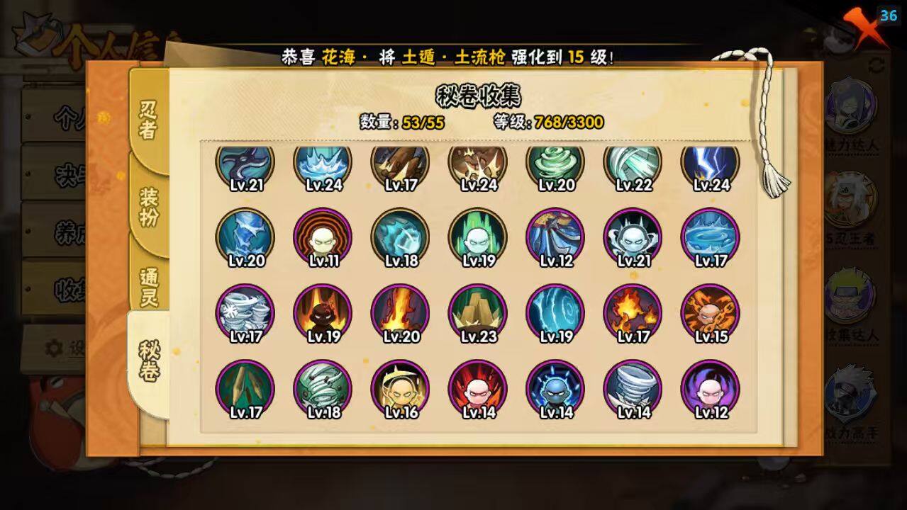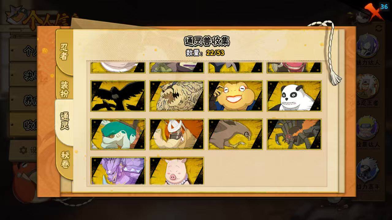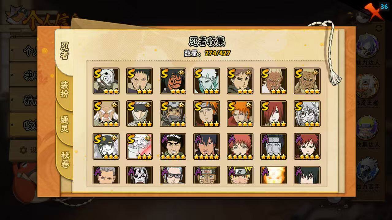 - [16881848]22S级忍者数-47A级忍者数 【S级忍者】:千手扉间「秽土转生」(3星),宇智波斑「秽土转生」(3星),春野樱「忍界大战」(3星),宇智波带土「忍界大战」(3星),宇智波鼬「须佐能乎」(3星),宇智波止水「须佐能乎」(3星),旗木卡卡西「须佐能乎」(3星),宇智波斑「木叶创立」(3星),自来也「舞之豪杰」(3星),大蛇丸(3星),自来也「传说中的三忍」(3星),波风水门(3星),漩涡鸣人「九喇嘛连结」(3星),迈特凯「死门」(3星),佩恩「天道」(3星),宇智波佐助「永恒万花筒」(3星),宇智波斑 「白面具」(3星宇智波斑「白面具」),大筒木金式(3星),漩涡鸣人「暴怒·第六尾」(3星),波风水门「九喇嘛连结」(3星),宇智波斑「五影会谈」(3星),漩涡鸣人·宇智波佐助(3星) 【A级忍者】:艾「青年」(2星),长门「青年」(2星),波风水门「青年」(2星),达鲁伊「博人传」(2星),迪达拉(2星),迪达拉「秽土转生」(2星),大蛇丸「晓」(2星),奇拉比(2星),飞段(3星),飞段「死司凭血」(2星),干柿鬼鲛(5星),漩涡鸣人「仙人模式」(2星),机械鸣人「初始形态」(2星),迈特凯(5星),旗木卡卡西「幻之真容」(2星),桃地再不斩「漂泊武士」(2星),桃地再不斩「秽土转生」(2星),我爱罗「疾风传」(2星),蝎(2星),蝎「绯流琥」(2星),小南「新春限定」(2星),小南「漂泊浪客」(2星),角都「秽土转生」(2星),猿飞阿斯玛(4星),猿飞阿斯玛「秽土转生」(2星),猿飞阿斯玛「七夕限定」(2星),宇智波止水「新春限定」(2星),宇智波鼬(2星),宇智波鼬「夏日限定」(2星),宇智波佐助「须佐能乎」(2星),宇智波佐助「万花筒写轮眼」(2星),日向雏田「最终章」(2星),宇智波带土「漂泊浪客」(2星),长十郎「六代目水影」(2星),神秘面具男「忍者之路」(2星),佩恩·六道「漂泊浪客」(2星),李洛克「忍界大战」(2星),黑土「博人传」(2星),千手扉间「漂泊武士」(2星),秋道丁次「忍界大战」(2星),千代「近松十人卫」(2星),神农「羁绊」(2星),不缘(2星),宇智波泉奈(2星),大野木「侠隐江湖」(2星),巳月「仙人模式」(2星),迈特凯「青春爆炸」(2星)