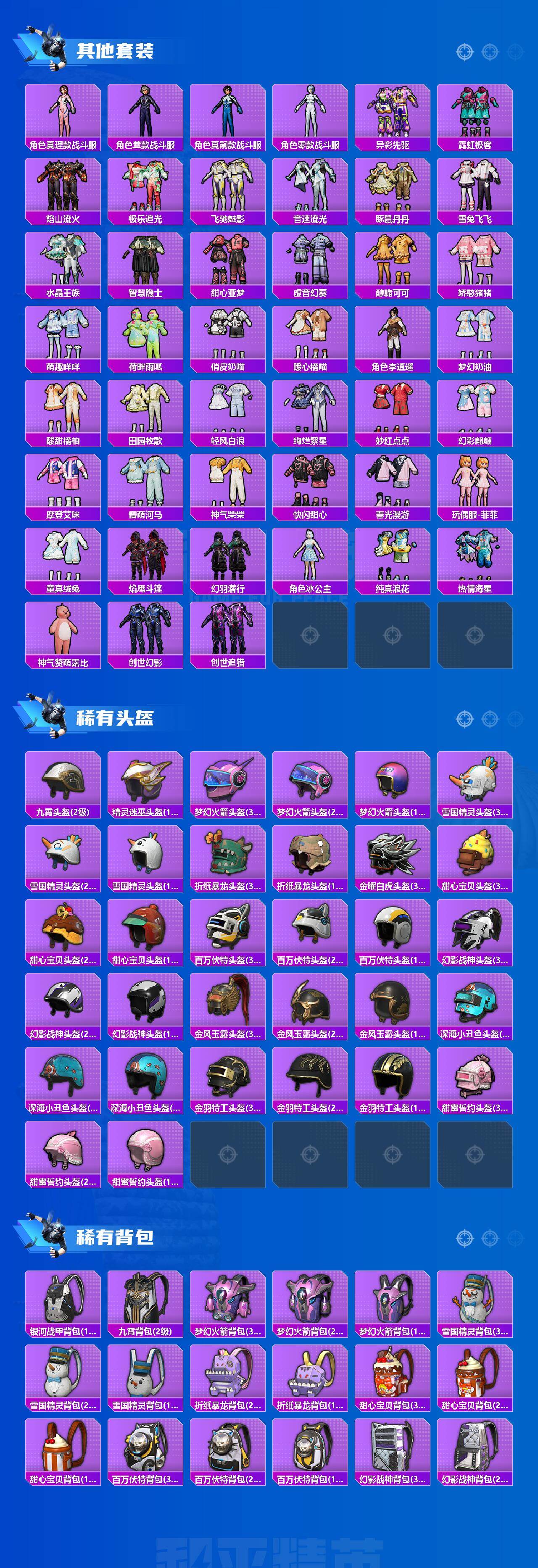 【热门品类】:粉装-怪诞乔克,粉装-雪国幻梦,粉装-梦幻火箭,套装-浪漫天命,套装-赤蝎幽灵,套装-都市猎人,套装-冥河战士,套装-派对舞王,套装-深海小丑鱼,套装-小丑鱼,套装-奇异狩猎者,角色-军刀雅典娜,套装-胖达团团,套装-黄金大亨,套装-天网终结者,套装-金羽特工,套装-忍者信条,套装-动感兔斯基人偶服,套装-SS1特训,套装-暗夜之虎,旭日初心兜帽大衣,套装-龟仙人,套装-潮萌小黄鸭,套装-暗影哥特,套装-浪漫波比,M416-星际漫游,熔岩游骑兵连帽夹克