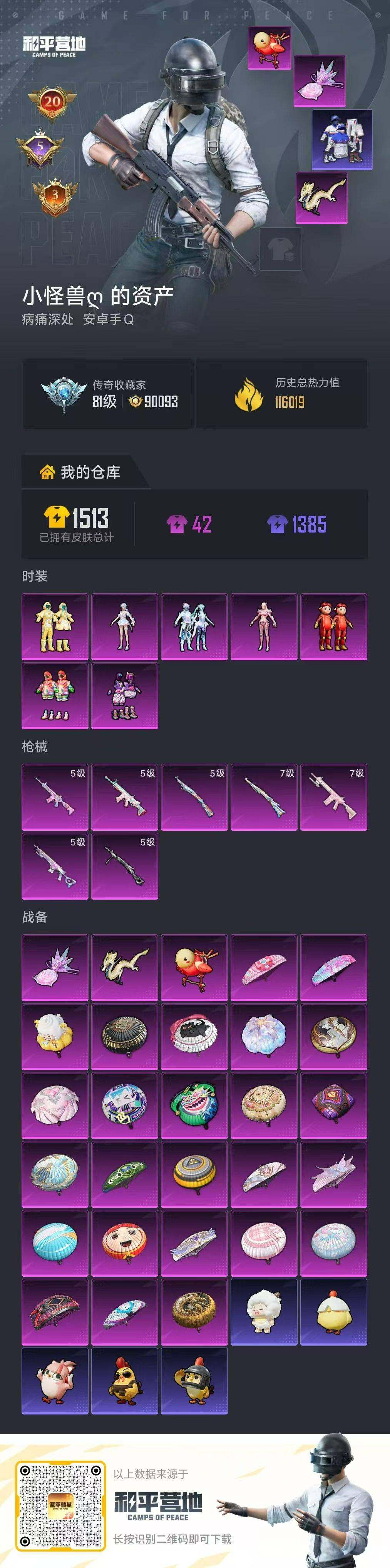 [16883087]安卓 手Q-7粉装-7特效枪-0载具-3粉色飞行器-116019热力值-20王牌印记-303套装-373枪皮