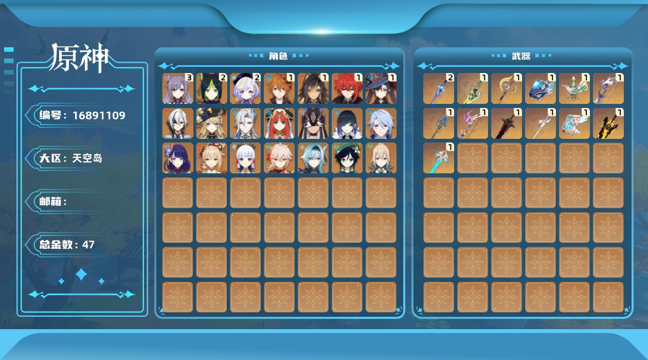 [16891109]60级/47黄/男主/22个五星角色/13个五星武器
