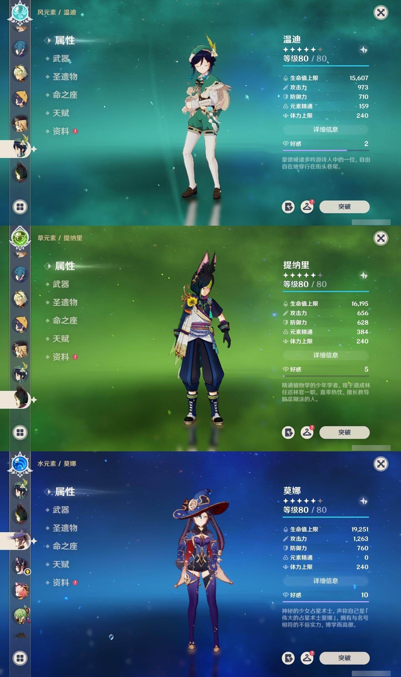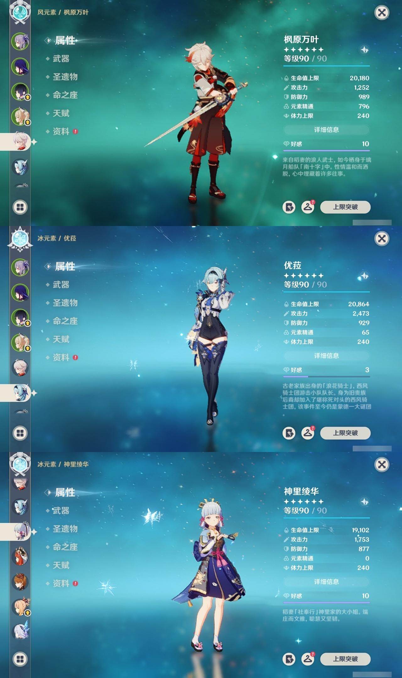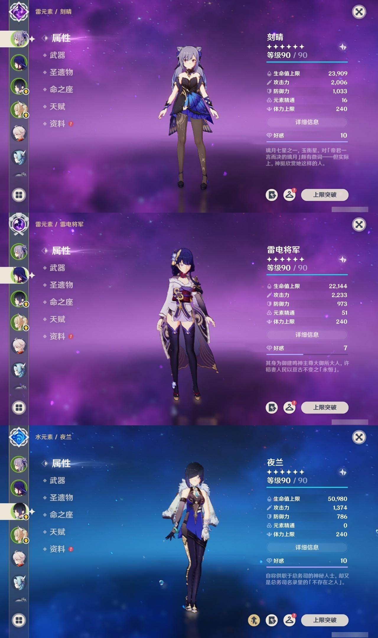 刻晴,雷电将军,枫原万叶,优菈,神里凌华,达达利亚,宵宫,温迪,莫娜,迪卢克,七七,琴