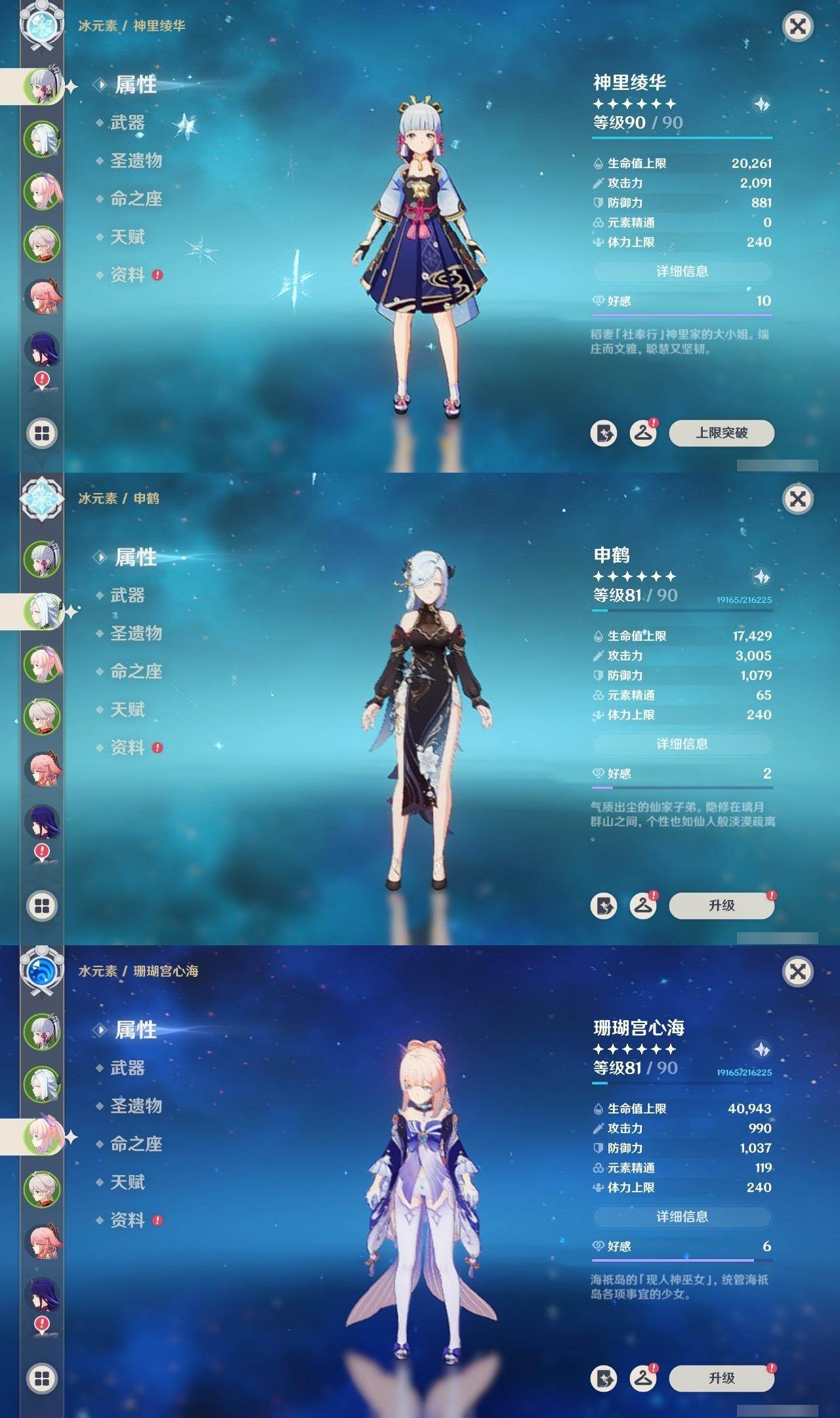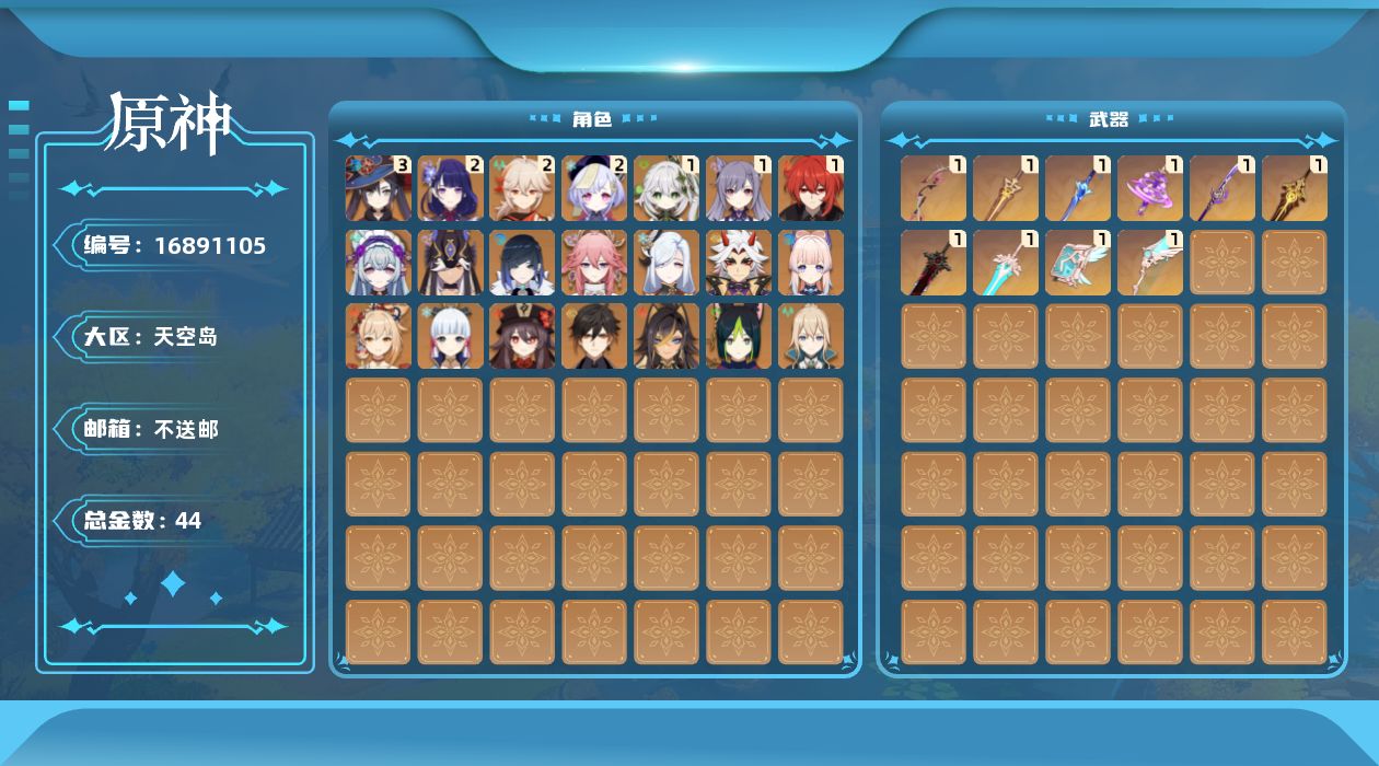 [16891105]58级/44黄/女主/22个五星角色/10个五星武器