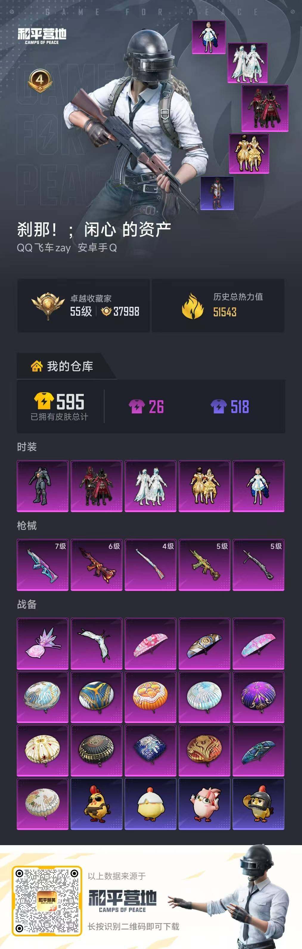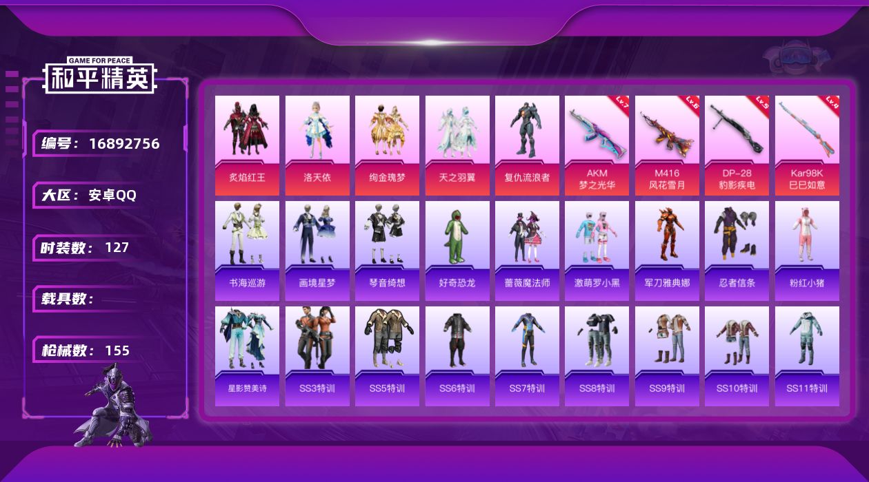 [16892756]【特价出售/店主推荐】安卓 手Q-5粉装-5特效枪-0载具-2粉色飞行器-51543热力值-4王牌印记-127套装-155枪皮