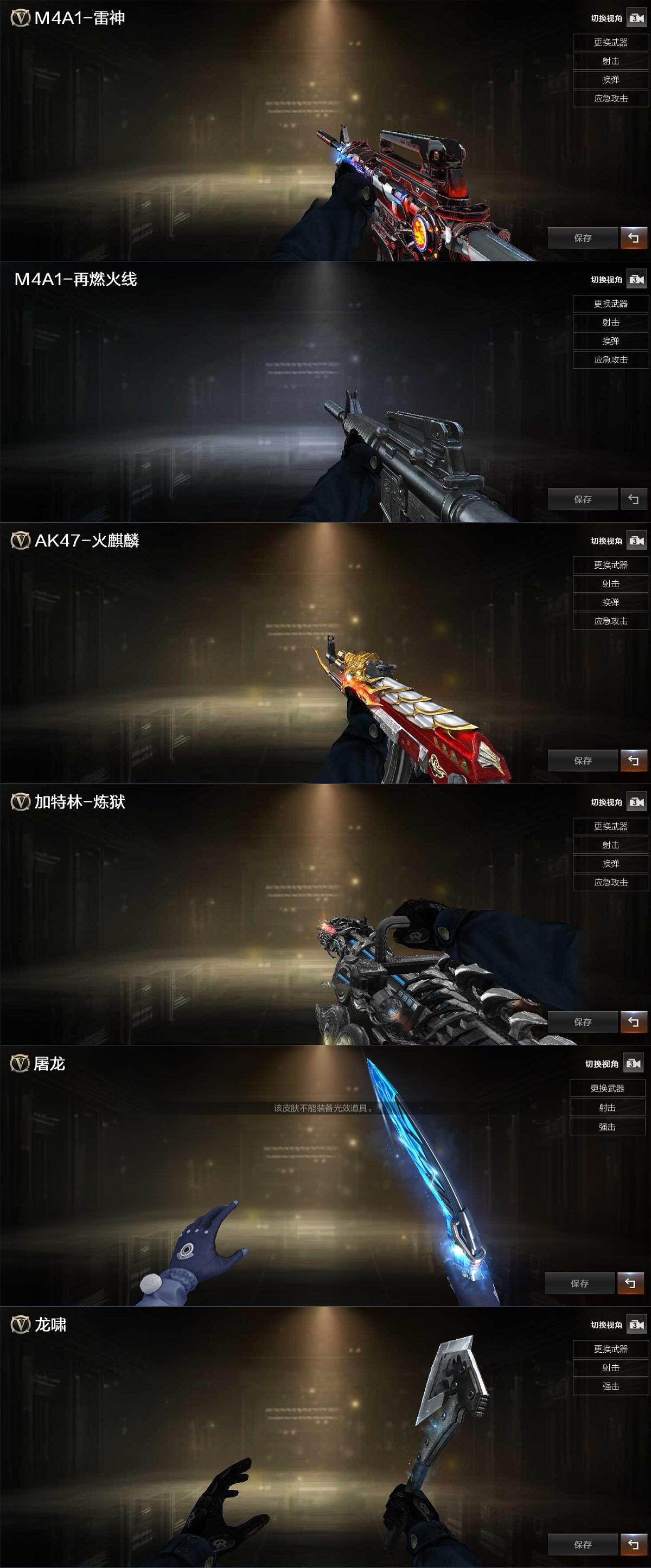 【皮肤】:雷神-暗月,M4A1-再燃火线,火麒麟-华夏之心,炼狱-星空,屠龙-星耀 皮肤,轻型军用手斧-再燃火线
