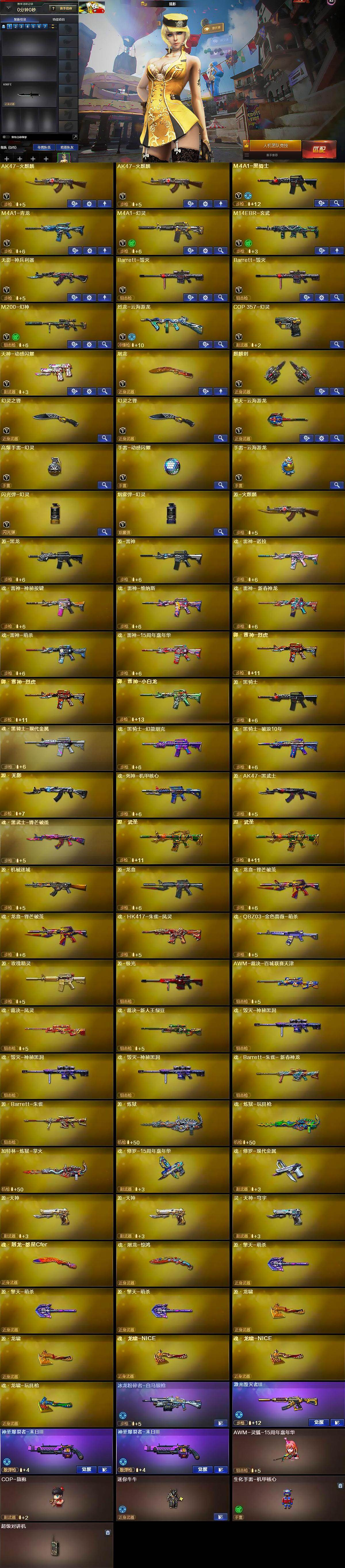- [16716970]河南一区-44V-3王者武器数-1炫金武器数 【热门武器】:QBZ03-金色蔷薇,M200-幻神,死亡之眼,汤姆逊-烈龙*6,RPK-盘龙*2,加特林-炼狱,沙鹰-修罗*4 【王者炫金武器】:王者之光,王者之力*2,炫金毁灭 【皮肤】:M4A1-千变-孔明皮肤,天龙-能量核心 【角色】:零,电竞少女,风暴女,灵狐者-职业经理,麻雀,潘多拉-甜心教官,蜀雪 【人偶武器】:COP-旗袍 【暴走生化】:死亡之眼 【英雄级武器】:AK47-火麒麟,M4A1-雷神*2,AK12-天启,黑武士-锦绣游龙,QBZ03-金色蔷薇,AWM-天龙*2,Barrett-毁灭*2,M200-幻神,RPK-盘龙*2,加特林-炼狱,汤姆逊-烈龙*6,沙鹰-修罗*4,沙鹰-天神,COP-雷霆,屠龙*2,龙啸,擎天,麒麟刺,高爆手雷-雷霆*2,闪光弹-雷霆*2,烟雾弹-雷霆*2 【道具】:炫彩背包,变异宝贝,夺命之镰,防化服,金色流光-枪王排位*2,星辰流光-枪王排位,枪王排位28赛季金色流光,枪王排位29赛季金色流光,防弹头盔*3,防弹衣*3,C4工具钳*3,手雷包*3 【特殊枪械】:6烈龙,2盘龙,1炼狱