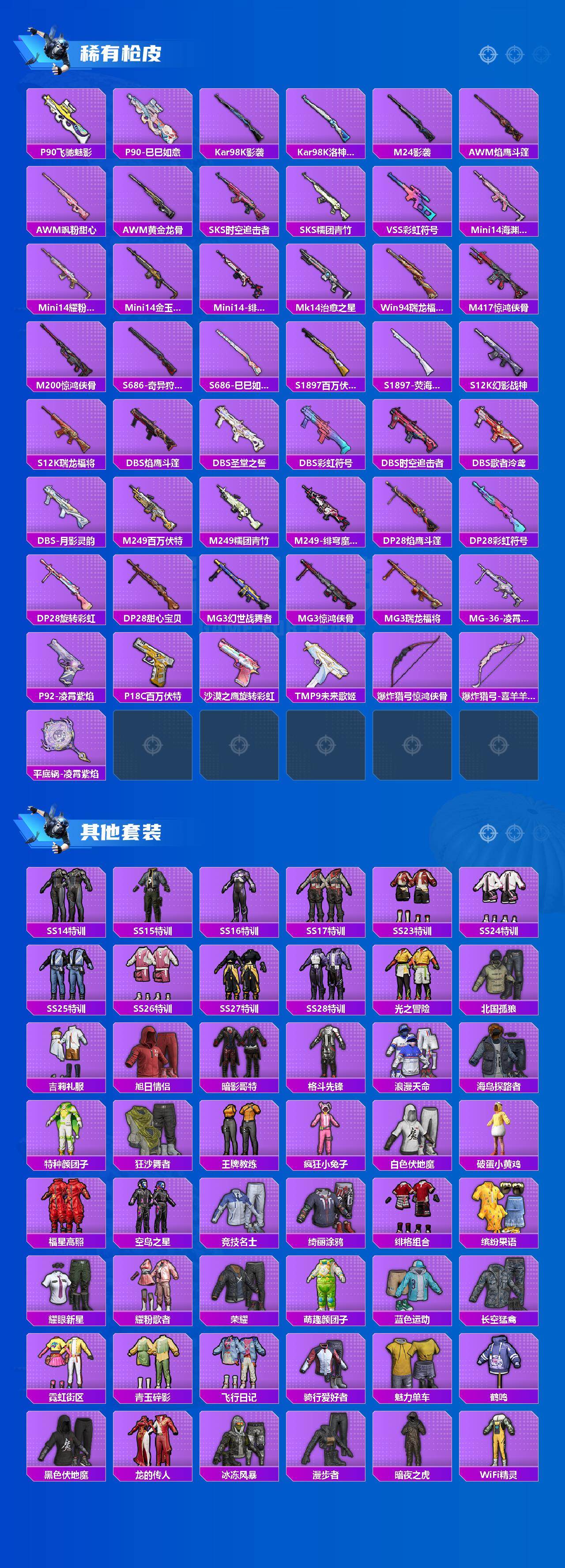 M416-黄金龙骨,M762-瑞龙福将,M762-风花雪月,AWM-黄金龙骨,S686-奇异狩猎者