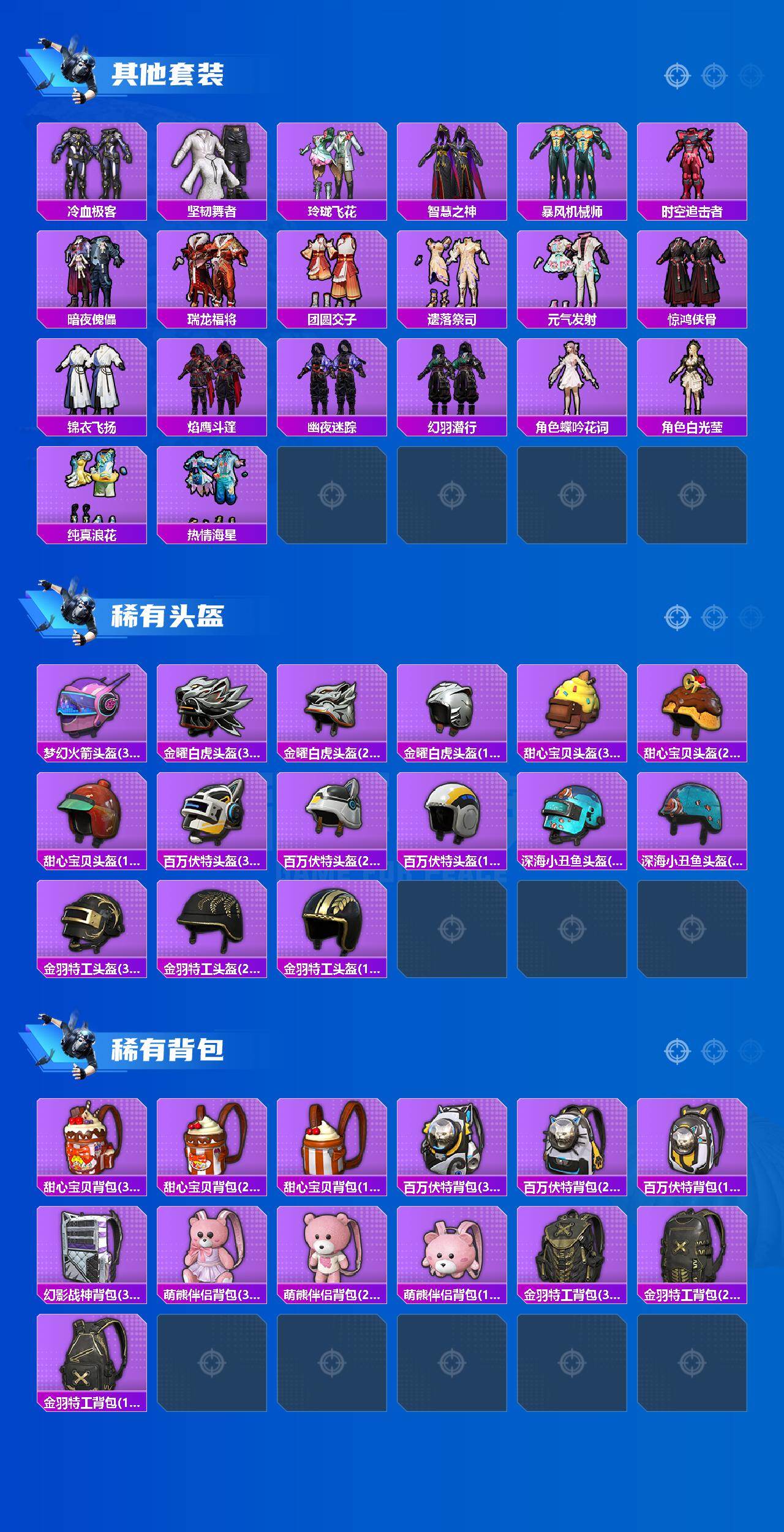 - [15612361]安卓 手Q-15粉装-12特效枪-3载具-3粉色飞行器-90573热力值-14王牌印记-184套装-231枪皮 【热门品类】:粉装-梦幻火箭,套装-浪漫天命,套装-都市猎人,套装-深海小丑鱼,套装-小丑鱼,套装-奇异狩猎者,套装-粉红小猪,角色-Mark.06 【粉色载具】:特斯拉Roadster(水滴蓝),兰博基尼Aventador SVJ(翡翠绿),兰博基尼URUS(明艳黄) 【粉色套装】:粉装-幻影战神,粉装-数码大师,粉装-未来战士,粉装-宝贝奶油派,粉装-梦幻火箭,粉装-新星烈龙,粉装-俏皮狐尾,粉装-绚金战神,粉装-海渊国主,粉装-青葱仙萝,粉装-碧影闪光,粉装-薄荷物语,粉装-橘柚倾心,角色-复仇流浪者,粉装-垂柳戏鸭 【粉色枪皮等级】:SCAR-L-青春物语(四级),M416-五爪金龙(二级),M416-心之恋语(一级),M416-风花雪月(三级),GROZA-香水柠檬(四级),AUG-星之彼岸(五级),M762-激战未来(四级),UMP45-恐龙拽拽(四级),Kar98K-巳巳如意(五级),M249-蓝莓炮弹(一级),DP-28-豹影疾电(五级),MG3-洛神天依(一级) 【粉色枪皮】:SCAR-L-青春物语,M416-五爪金龙,M416-心之恋语,M416-风花雪月,GROZA-香水柠檬,AUG-星之彼岸,M762-激战未来,UMP45-恐龙拽拽,Kar98K-巳巳如意,M249-蓝莓炮弹,DP-28-豹影疾电,MG3-洛神天依 【粉色飞行器】:王牌四分卫飞行器,星之彼岸飞行器 【粉色降落伞】:百万伏特降落伞,甜心宝贝降落伞,梦幻火箭降落伞,阿狸红降落伞,香水柠檬降落伞,星之彼岸降落伞,怪笑疯兔降落伞,烈焰拳霸降落伞,暗夜玫瑰降落伞,洛神天依降落伞,蓝莓炮弹降落伞,碧影闪光降落伞,青春物语降落伞,恐龙拽拽降落伞,筑梦精灵降落伞,圣光天使降落伞,闪光银龙降落伞,垂柳戏鸭降落伞,翩跹演武降落伞,彩虹甜喵降落伞,旋转彩虹降落伞,幻彩电音降落伞 【稀有套装】:套装-巳巳如意 【稀有枪皮】:AKM-夜灯,AKM-山经魅狐,AKM-彩虹符号,AKM-影袭,AKM-星之彼岸,AKM-灼热熔岩,AKM-王牌投手,AKM-环太平洋,AKM-百万伏特,AKM-破晓战魂,AKM-萌趣颜团子,AKM-虎虎生威,AKM-锦绣火鲤,AKM-霓虹街区,M16A4-夜灯,M1
