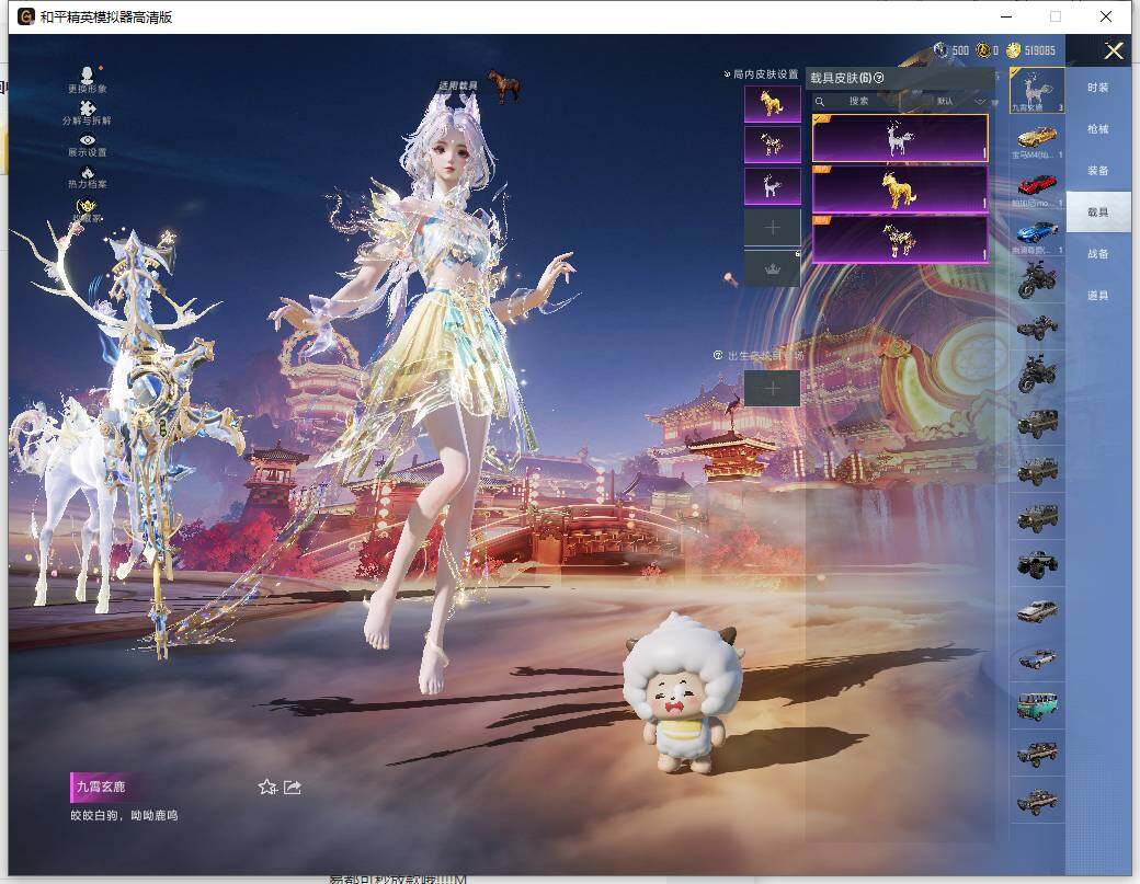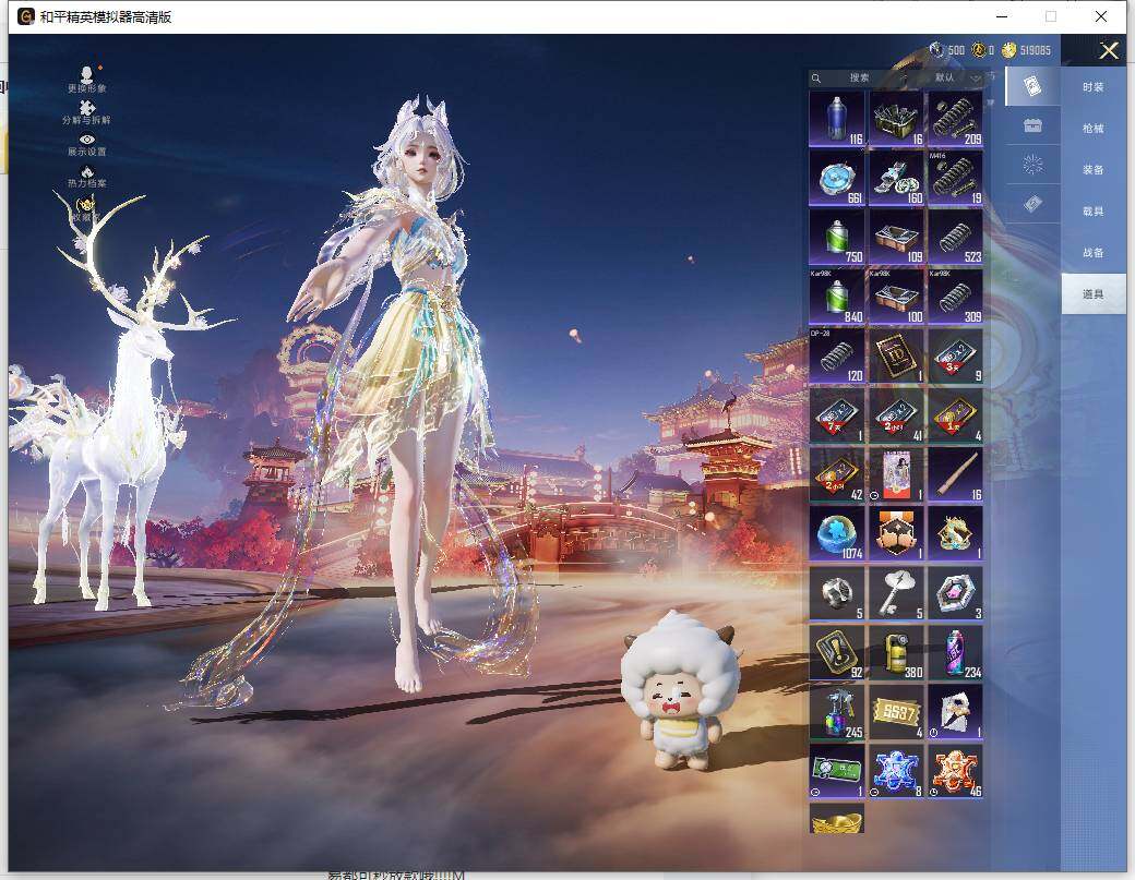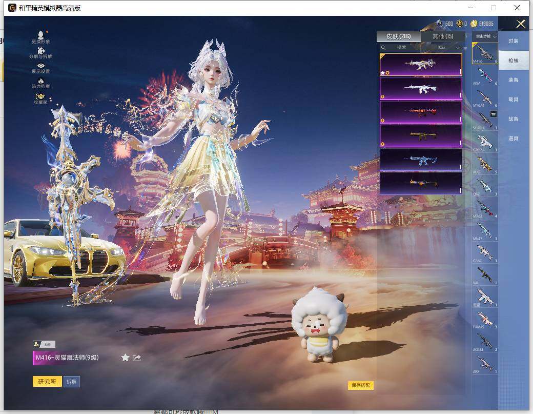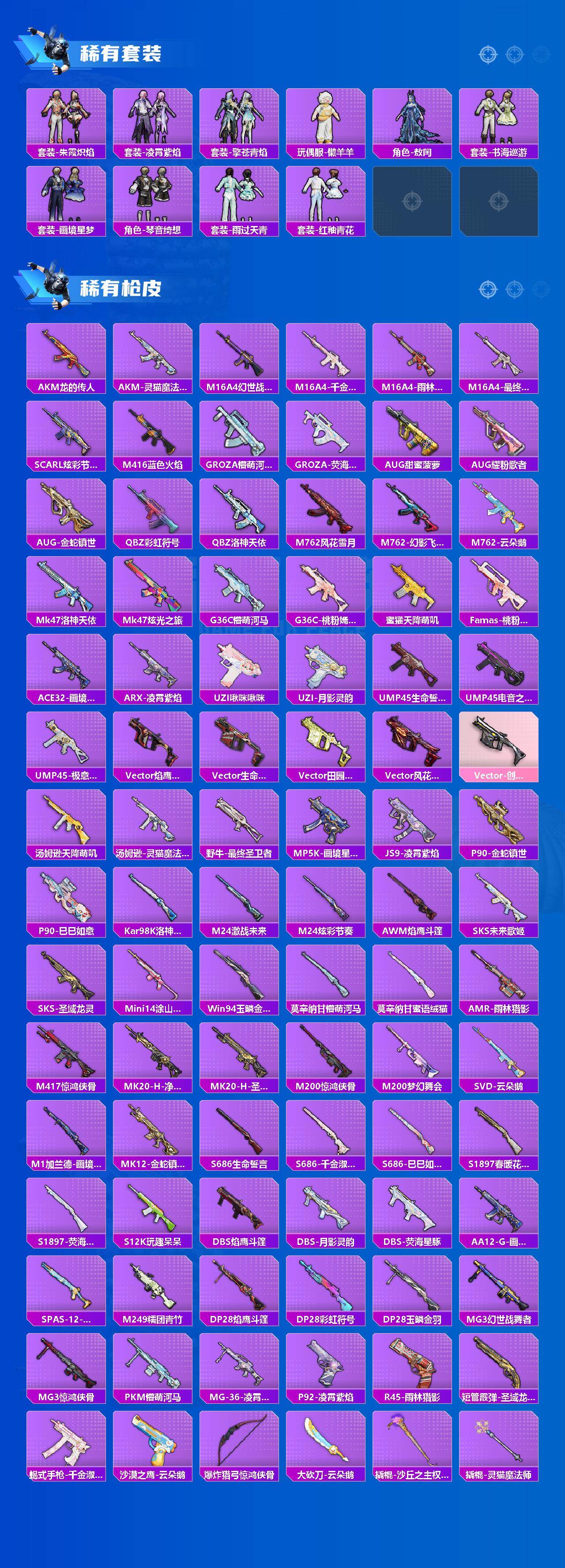 AKM-梦之光华,M416-五爪金龙,M416-风花雪月,M416-女娲灵识,Kar98K-巳巳如意,Kar98K-圣域龙灵,MG3-洛神天依