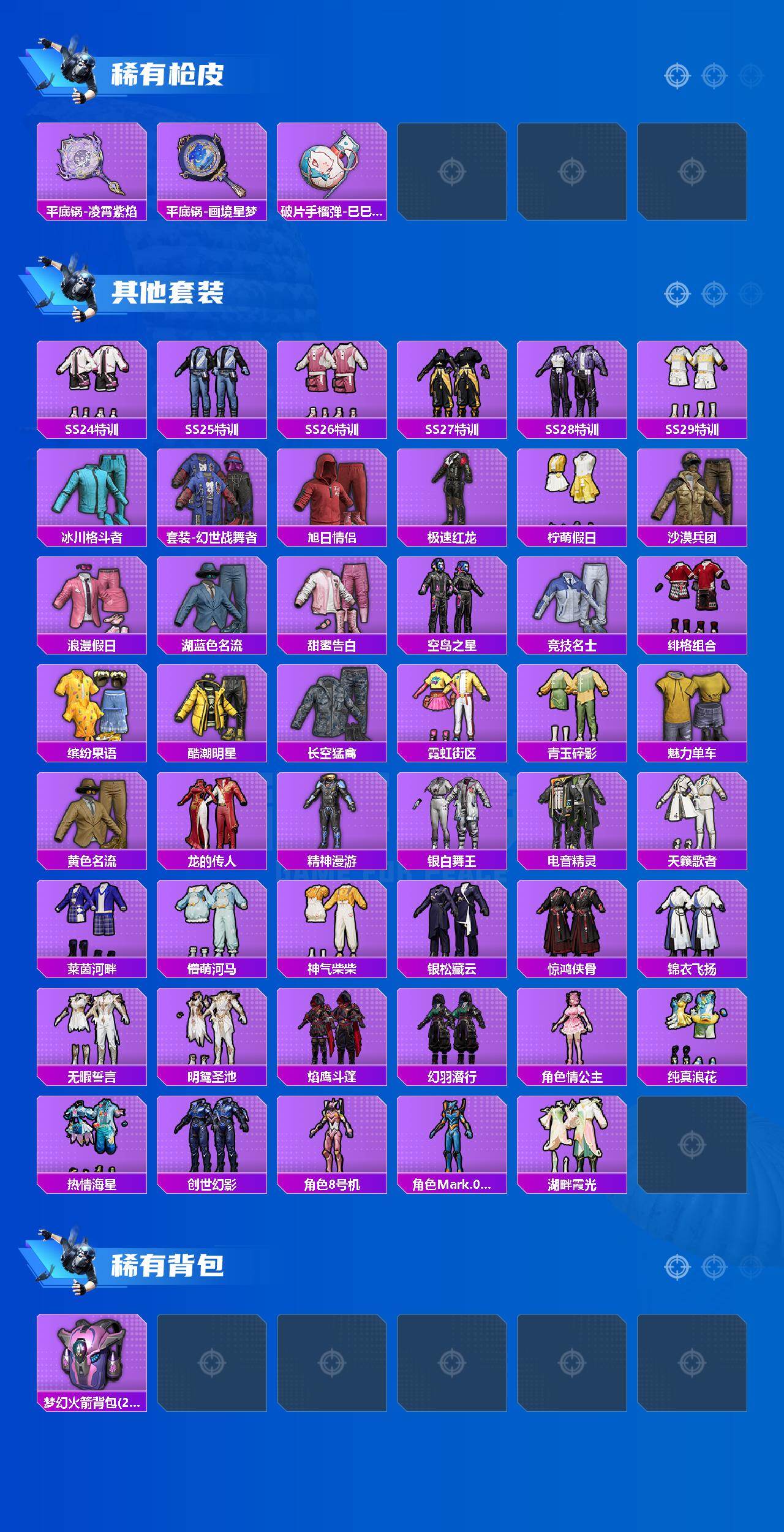 - [16326990]【店主推荐捡漏号!可直接换绑】3375k哈伏币-265m流动资产-60烽火等级-钻石-12战场等级-列兵 【干员外观】:红狼-蚀金玫瑰,骇爪-维什戴尔,深蓝-不破誓约,红狼-电锯惊魂 【近战皮肤】:近战-黑鹰 【传说外观】:M4A1突击步枪-蚀金玫瑰,M4A1突击步枪-阿米娅,ASh-12战斗步枪-鹅鸭杀,SCAR-H战斗步枪-启航,KC17突击步枪-电锯惊魂,QCQ171冲锋枪-鹅鸭杀,M250通用机枪-骑士之心,QJB201轻机枪-鹅鸭杀,R93狙击步枪-维什戴尔 【史诗外观】:ASh-12战斗步枪-无极限,腾龙突击步枪-猎鳄行动,K437突击步枪-守护者,MP5冲锋枪-战术竞备,MP5冲锋枪-竞技风,SR-3M紧凑突击步枪-战术竞备,勇士冲锋枪-深海恐惧,勇士冲锋枪-工业狂潮,MP7冲锋枪-守护者,PKM通用机枪-蝮蛇,M250通用机枪-囚徒,Mini-14射手步枪-守护者,M700狙击步枪-蝮蛇,M700狙击步枪-哈夫克警备,AWM狙击步枪-无极限,复合弓-守护者 【稀有外观】:AKM突击步枪-战术演练,AKM突击步枪-肃杀,QBZ95-1突击步枪-公平竞技,M7战斗步枪-捣蛋鬼,SCAR-H战斗步枪-荣耀列队,SCAR-H战斗步枪-黄昏,G3战斗步枪-战术演练,G3战斗步枪-主宰,腾龙突击步枪-冰天雪地,MP5冲锋枪-弄臣,MP5冲锋枪-哈夫克卫队,P90冲锋枪-黄昏,P90冲锋枪-捣蛋鬼,Vector冲锋枪-先锋,UZI冲锋枪-亚特兰蒂斯,SMG-45-行动开启,SMG-45冲锋枪-幻影结构,勇士冲锋枪-冰天雪地,M1014霰弹枪-幻影结构,S12K霰弹枪-战术演练,QJB201轻机枪-黄昏,QJB201轻机枪-哈夫克卫队,Mini-14射手步枪-荣耀列队,SKS射手步枪-弄臣,SR-25射手步枪-开拓,SV-98狙击步枪-星链科技,SV-98狙击步枪-哈夫克航天,SV-98狙击步枪-精英联盟,G18-星链科技,G18-哈夫克航天 【普通外观】:M4A1突击步枪-粉色涂装,M4A1突击步枪-高雅黑,M4A1突击步枪-海色,QBZ95-1突击步枪-高雅黑,QBZ95-1突击步枪-海浪,QBZ95-1突击步枪-三角洲力量,QBZ95-1突击步枪-海色,QBZ191突击步枪-三角洲力量,K416突击步枪-几何迷彩,M16A4突击步枪-高雅黑,AUG突击步枪