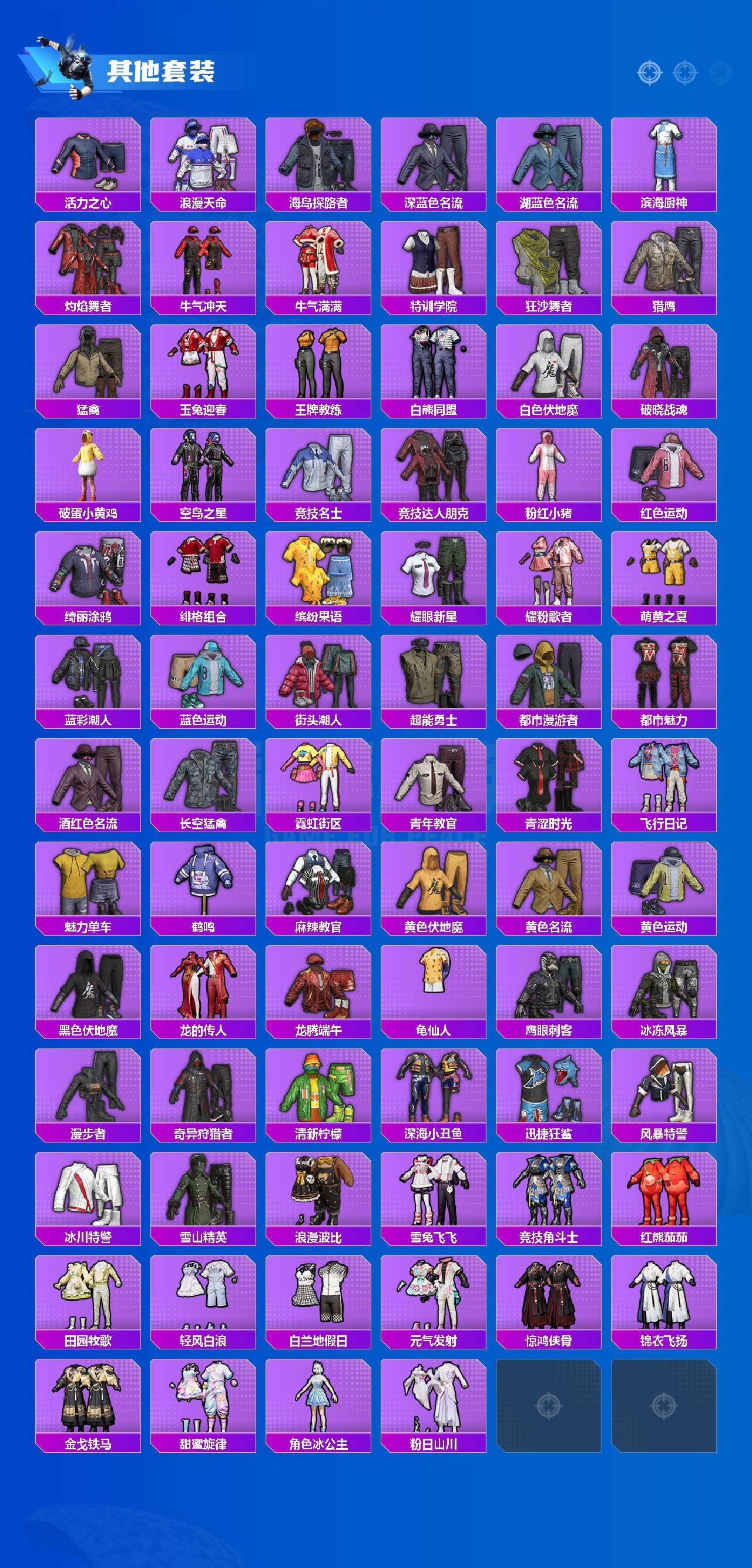 套装-深海小丑鱼,套装-奇异狩猎者,套装-浪漫波比,套装-迅捷狂鲨,套装-鹰眼刺客,角色-星云暗核,套装-创世·救赎