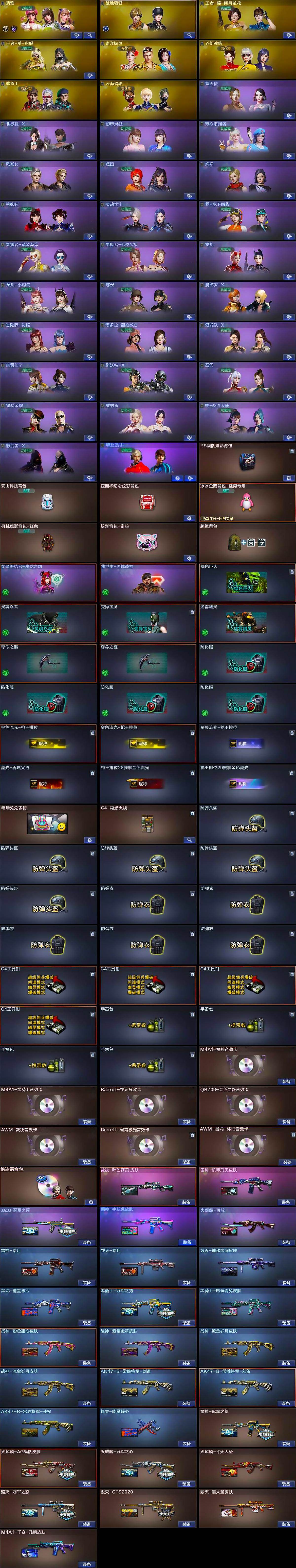 【皮肤】:QBZ03-冠军之薇,裁决-叶芒苍灵 皮肤,雷神-暗月,雷神-冠军之魄,雷神-机甲刑天皮肤,雷神-宇航兔皮肤,火麒麟-AG战队皮肤,火麒麟-冠军之心,火麒麟-平天大圣,火麒麟-百城,毁灭-暗月,毁灭-冠军之怒,毁灭-CFS2020,毁灭-黑大圣皮肤,毁灭-神秘黑洞皮肤,M4A1-千变-孔明皮肤,黑龙-能量核心,黑骑士-冠军之势,黑骑士-电玩青兔皮肤,战神-粉色甜心皮肤,战神-紫绶金章皮肤,战神-流金岁月皮肤*2,AK47-B-常胜将军-刘备*2,AK47-B-常胜将军-孙权,修罗-能量核心