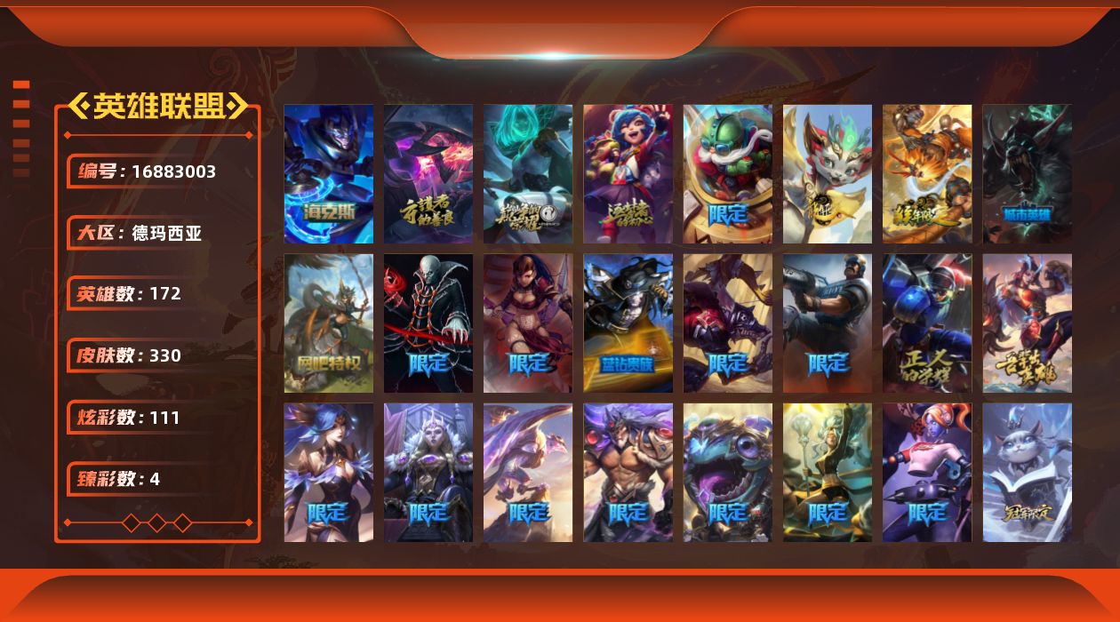 [16883003]可二次【特价出售/店主推荐】白银段位-172英雄-330皮肤-111炫彩-0终极-5神话-28限定-22传说-84史诗