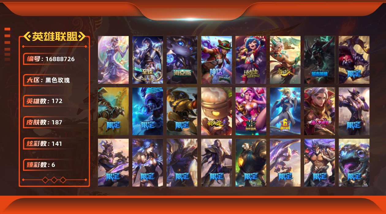 [16888726]【店主推荐捡漏号】铂金段位-172英雄-187皮肤-141炫彩-1终极-4神话-29限定-16传说-43史诗