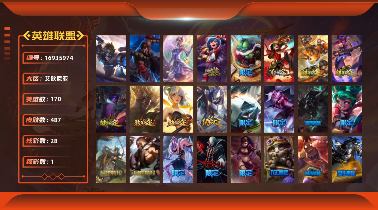 [16935974]【店主推荐捡漏号】未定级段位-170英雄-487皮肤-28炫彩-3终极-2神话-82限定-34传说-128史诗