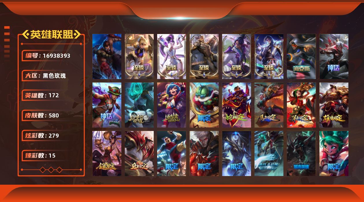 [16938393]【店主推荐捡漏号!可直接换绑】铂金段位-172英雄-580皮肤-279炫彩-1终极-15神话-87限定-48传说-143史诗