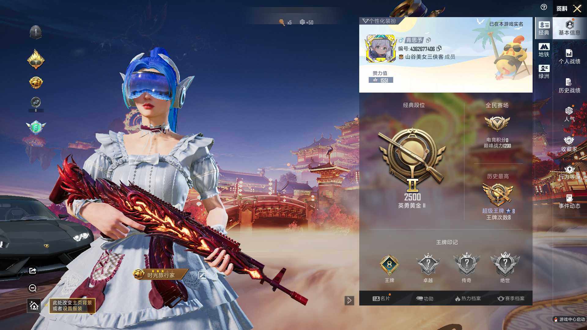 - [12296259]10粉装 4特效枪 3载具 13印记 可二次 可修改实名 连体王者 身法装备:8号机(新粉螳螂),Mark.06(新蓝螳螂) 优质装备:焰龙咆哮,路特斯ELETRE(冰川蓝),路特斯EVIJA(星际黄),炙焰红王,DP-28暗夜鎏金,七级DP-28-暗夜鎏金,DP-28-千金淑猫,七级DP-28-千金淑猫,千金淑猫,星穹咏叹调,绯穹魔姬,Kar98K-巳巳如意 热门装扮:筑梦精灵,暗夜鎏金,未来歌姬,小叽联名款,美雪,守护天翼,迅捷狂鲨,胡桃卫兵,暗夜魅影 稀有枪皮:DP-28-豹影疾电 五级特效枪:五级Kar98K-巳巳如意,五级DP-28-豹影疾电 紫色装扮:田园牧歌,轻风白浪,和煦暖阳,SS22特训,孙悟空,SS23特训,摩登艾咪,香榭午后,娇憨猪猪,梦幻奶油,暖心橘喵,夏雨游龙,萌趣咩咩,SS21特训,SS31特训套装,人气偶像,军械专家,冷焰舞者,旭日情侣,SS30特训套装,云朵鹅,彩虹兔,雪绒豹,SS33特训套装,青涩时光,顶瓜瓜,时希公主,灵公主,SS20特训,青春冒险家,潮流游乐家,SS15特训,暗夜傀儡,时空追击者,暴风机械师,SS16特训,SS13特训,星梦畅游,SS14特训,萌趣颜团子,特种颜团子,猎梦纪元,飞驰魅影,音速流光,SS19特训,英勇保护者,粉团憨憨,覆海蛟龙,吉莉礼服,甜心亚梦,虚音幻奏,雪兔飞飞,浓情摩卡,瑞龙福将,团圆交子,SS17特训,SS18特训,都市魅力,酒红色名流,酷潮明星,长空猛禽,青年教官,青春校园,缤纷果语,蓝彩潮人,蓝色运动,虎虎生威吉莉,街头潮人,绛羽幽主,飞行日记,龙腾端午,骑行爱好者,魅力单车,鹤鸣,麻辣教官,黄色伏地魔,黄色名流,黄色运动,黎明保卫者,黑色伏地魔,龙的传人,龟仙人,冰河战士,龙魂突击队,蝶变,香桃花海,极速红龙,柠萌假日,格斗先锋,橘黑制服,沙漠兵团,海岛探路者,海滨突袭者,涂山之恋,深蓝色名流,幻影武者,夏日音浪,完美偶像,帅气教官,幻世战舞者,战地督导,探宝勇士,湖蓝色名流,绮丽涂鸦,疯狂小兔子,白色伏地魔,破晓战魂,破蛋小黄鸡,甜蜜告白,福星高照,空岛之星,空投萌叽,竞技达人朋克,红色运动,王牌教练,牛气冲天,灰色格斗者,灼焰舞者,炫蓝之夏,热血青春,牛气满满,猛禽,猎鹰,小熊娃娃,雏菊兔兔,萝兰蝴蝶,SS29特训,多纳泰罗,狂花道·娜可露露,星途旅人,纯真浪花,热情海星,SS