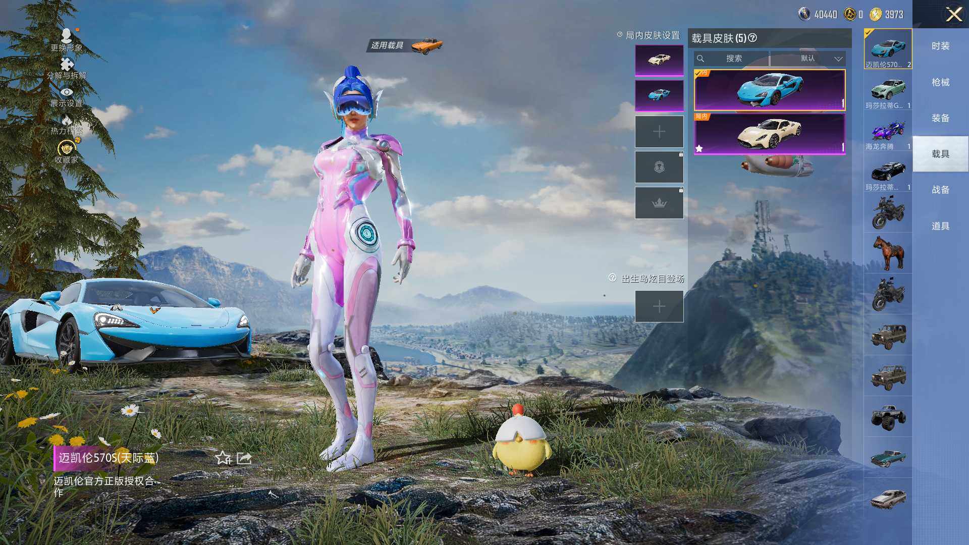 玛莎拉蒂MC20(星石白),玛莎拉蒂Quattroporte(夜幕蓝),玛莎拉蒂Grecale(薄荷绿),迈凯伦570S(天际蓝),海龙奔腾,僚机-萌兔起飞