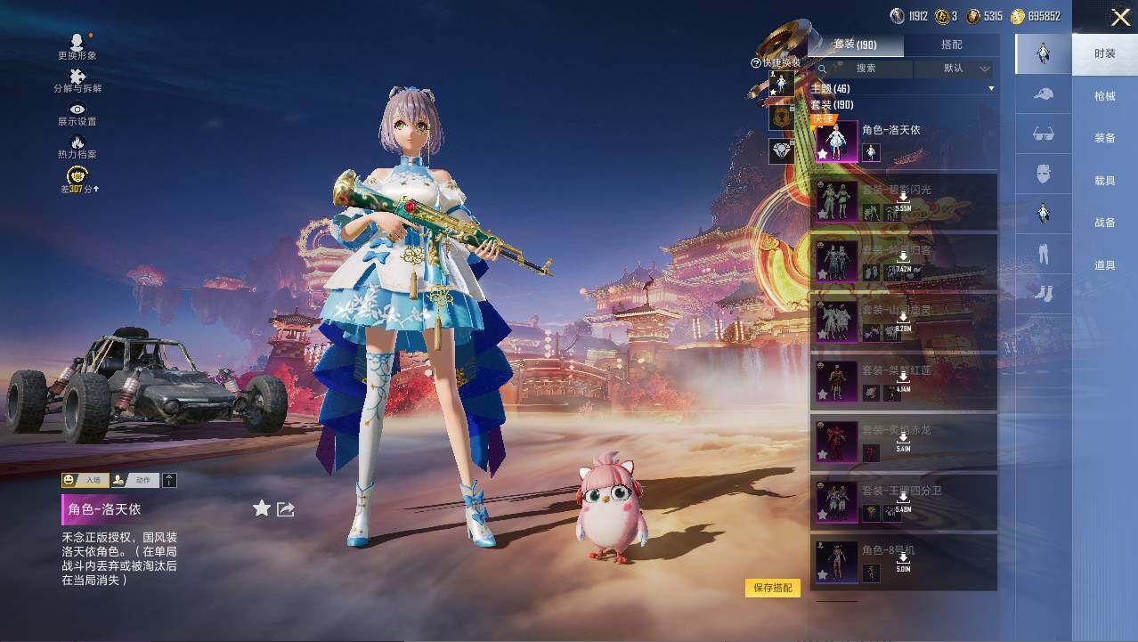 套装-奇异狩猎者,套装-王牌四分卫,套装-炙焰赤龙,套装-桀骜红莲,套装-山涧鹿灵,角色-洛天依,套装-吟月归客,套装-碧影闪光,套装-爱崽白熊,套装-呆萌铁蟹,套装-梦魇先生,套装-软萌银虎