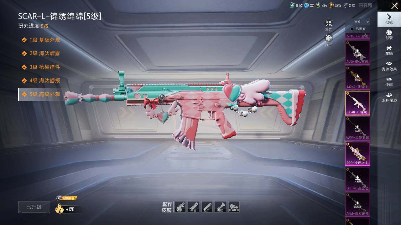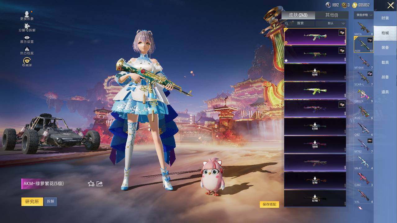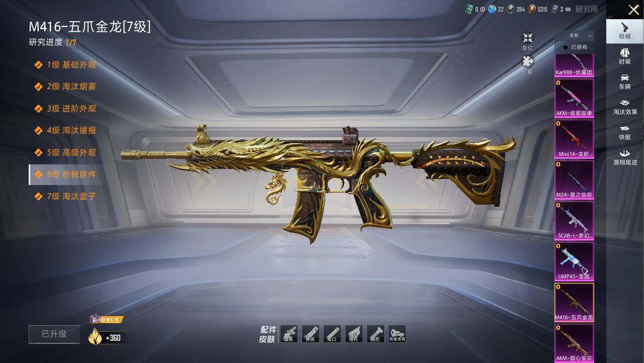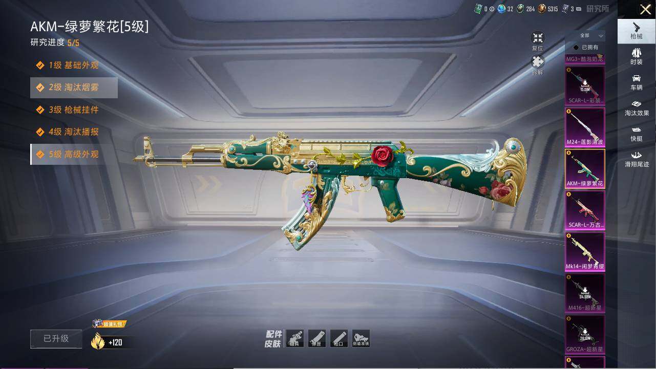 AKM-绿萝繁花,SCAR-L-锦绣绵绵,M416-五爪金龙,Kar98K-巳巳如意