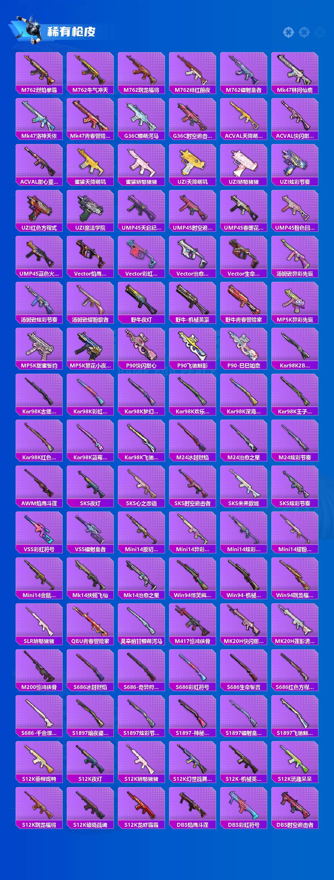 M762-瑞龙福将,Mk47-林间仙鹿,Kar98K-古堡领主,Kar98K-深海曼妙,S686-奇异狩猎者