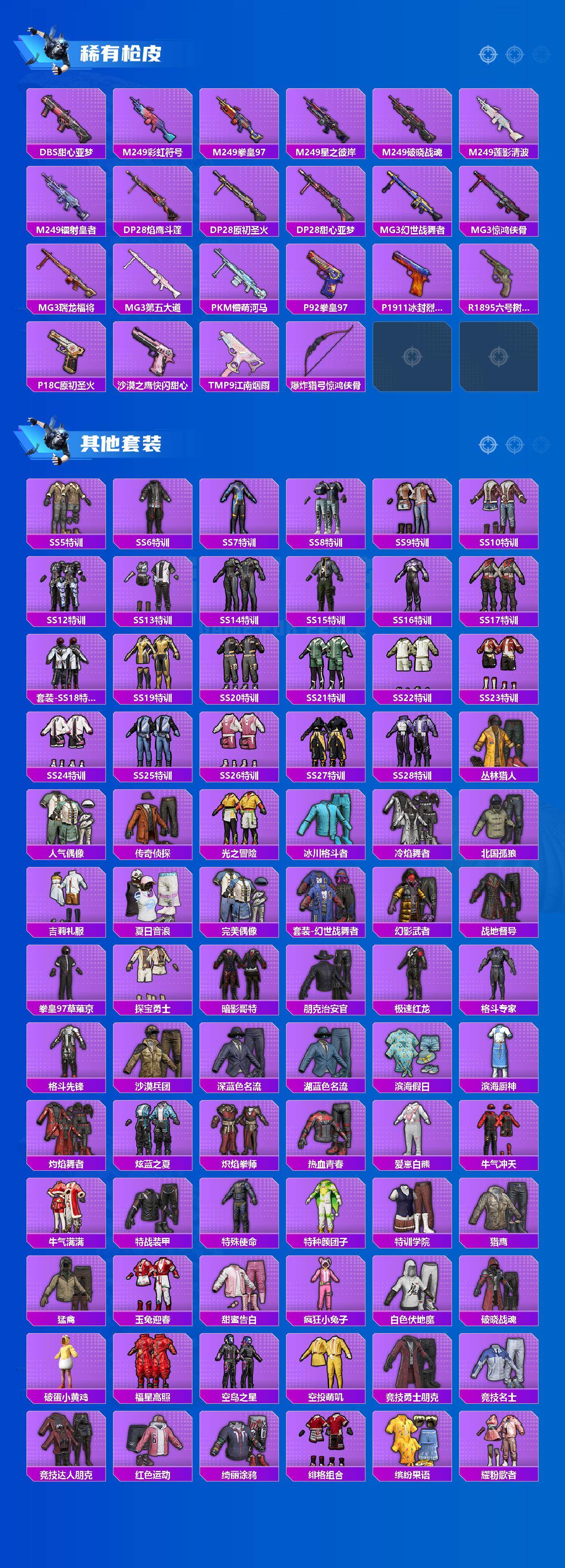 - [13880465]可二次【店主推荐捡漏号!可直接换绑】 苹果 微信-15粉装-10特效枪-7载具-4粉色飞行器-9.1w热力值-4王牌印记-159套装-212枪皮【热门品类】:粉装-梦幻火箭,套装-浪漫天命,套装-奇异狩猎者,套装-忍者信条,套装-浪客战士,套装-龟仙人,套装-潮萌小黄鸭【粉色载具】:特斯拉Roadster(沁心粉),阿斯顿马丁DBS(金),阿斯顿马丁DBX(橙),玛莎拉蒂Ghibli(金),玛莎拉蒂Ghibli(粉),合金龙骨(绿),鬼马风驰【粉色套装】:粉装-数码大师,粉装-宝贝奶油派,粉装-精灵迷巫,粉装-梦幻火箭,粉装-金风玉露,粉装-金属狂野,粉装-古堡领主,粉装-天禅智恒,粉装-狩月元帅,粉装-琉璃脉冲,粉装-新星烈龙,粉装-甜蜜誓约,粉装-极致幻想,粉装-潮汐统领,粉装-草莓生巧【粉色枪皮等级】:AKM-甜心宝贝(五级),AKM-炫紫旋律(五级),SCAR-L-梦幻火箭(四级),M416-五爪金龙(七级),GROZA-香水柠檬(四级),M762-激战未来(四级),汤姆逊-怪笑疯兔(四级),Kar98K-伏魔团(五级),Kar98K-巳巳如意(四级),DP-28-扶摇飞仙(五级)【粉色飞行器】:古堡领主飞行器,四圣焕新飞行器