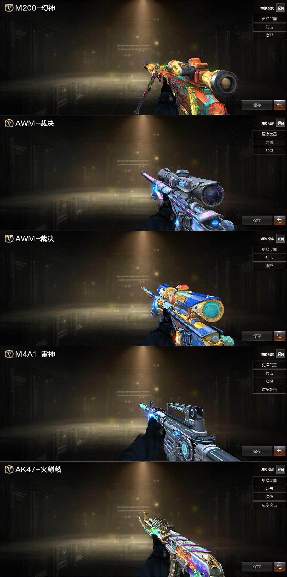 【热门武器】:QBZ03-金色蔷薇,M4A1-青龙,M200-幻神*2,M4A1-黑骑士*2,毁灭-孙三炮,沙鹰-修罗*4