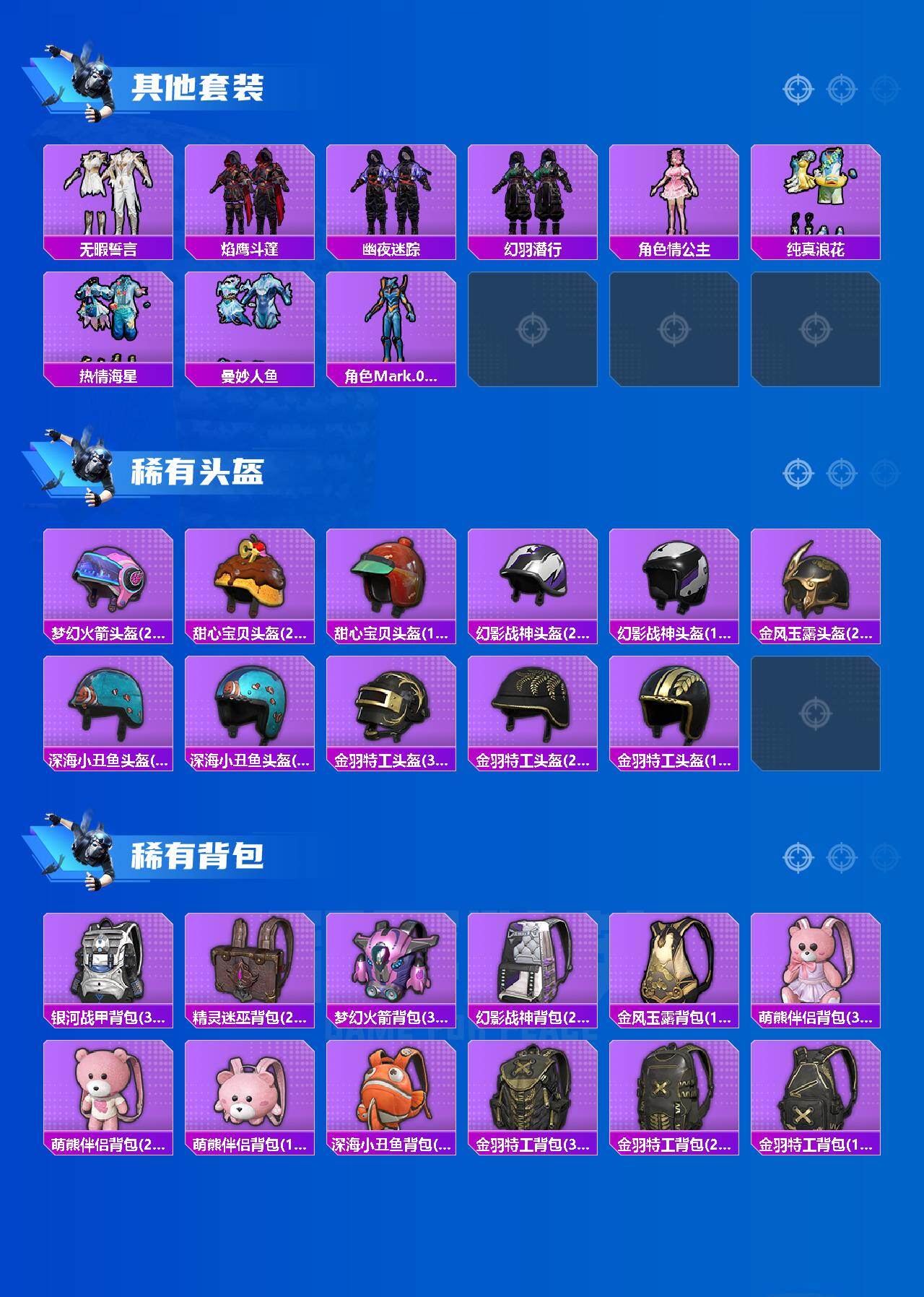 套装-都市猎人,套装-深海小丑鱼,套装-幻影战神,套装-宝贝奶油派,套装-金风玉露,套装-未来歌姬,套装-鹰眼刺客,套装-呆萌铁蟹