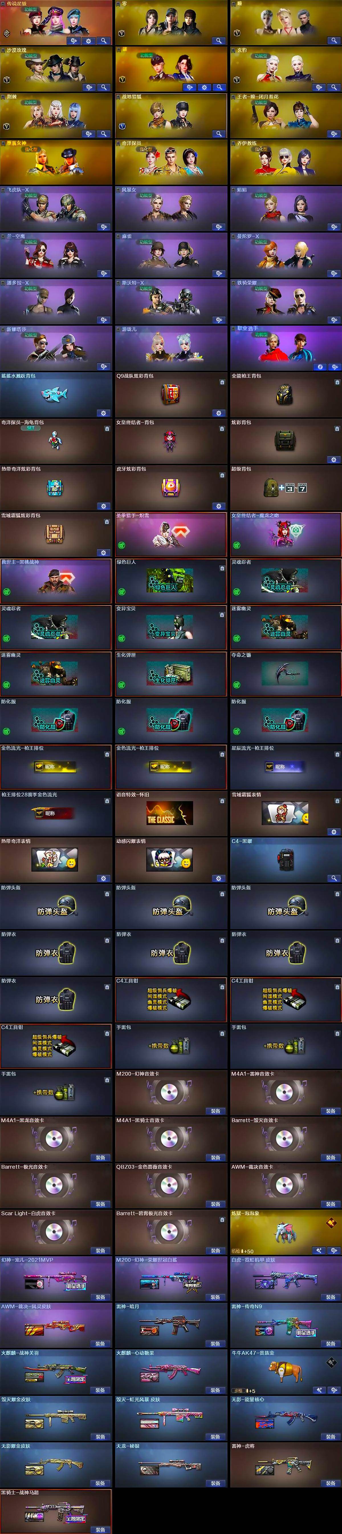 【皮肤】:幻神-宠儿-2021MVP,M200-幻神-荣耀世冠白鲨,白虎-霓虹机甲 皮肤,AWM-裁决-凤灵皮肤,雷神-暗月,雷神-虎将,雷神-传奇N9,火麒麟-战神关羽,火麒麟-心动糖果,牛牛AK47-贵族金,毁灭耀金皮肤,毁灭-虹光风暴 皮肤,黑骑士-战神马超,无影-能量核心,无影耀金皮肤,天龙-秘银,炼狱-泡泡象