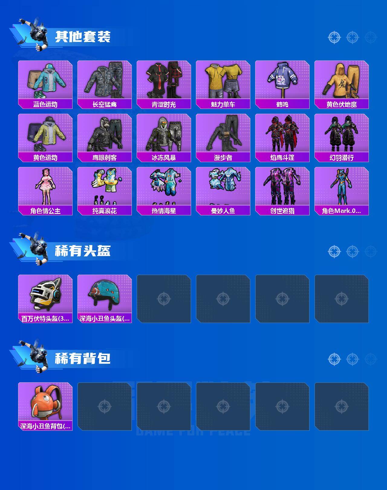 【其他套装】:套装-SS27特训,套装-SS28特训,套装-SS29特训,套装-幻影武者,套装-柠萌假日,套装-森林游猎者,套装-海岛探路者,套装-湖蓝色名流,套装-猎鹰,套装-猛禽,套装-王牌教练,套装-白色伏地魔,套装-破蛋小黄鸡,套装-竞技名士,套装-红色运动,套装-绯格组合,套装-缤纷果语,套装-耀粉歌者,套装-蓝色运动,套装-长空猛禽,套装-青涩时光,套装-魅力单车,套装-鹤鸣,套装-黄色伏地
