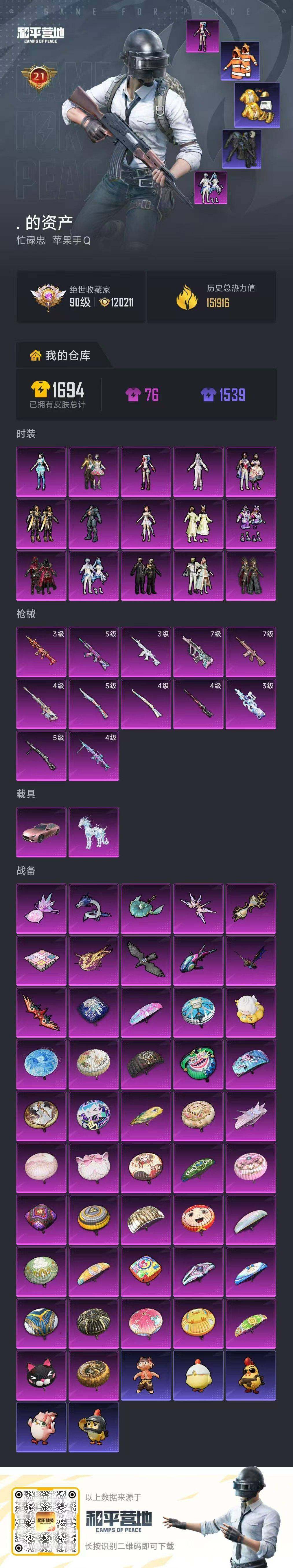 [16946438]苹果 手Q-15粉装-12特效枪-2载具-11粉色飞行器-151916热力值-21王牌印记-290套装-436枪皮