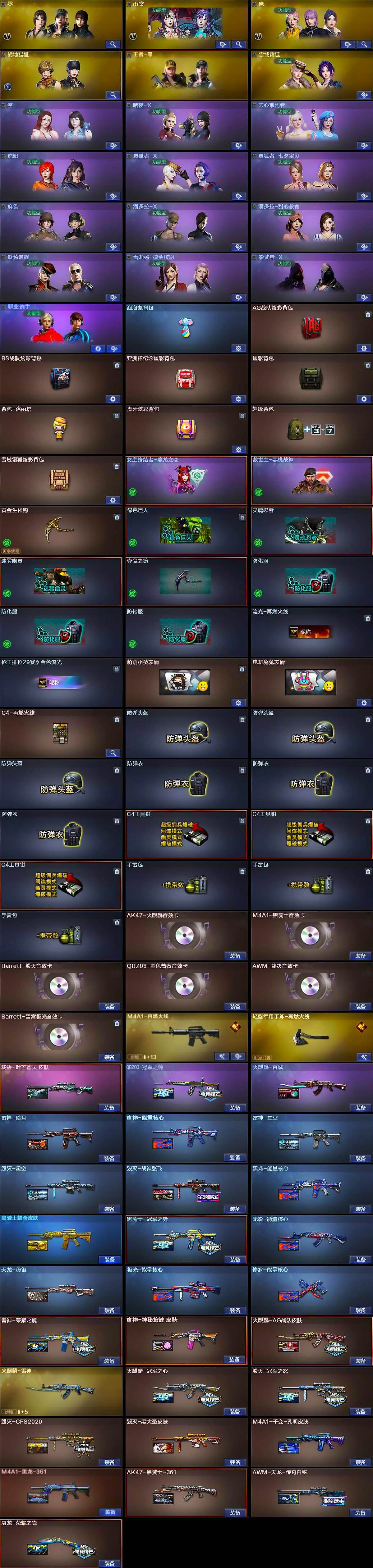 【皮肤】:QBZ03-冠军之薇,裁决-叶芒苍灵 皮肤,雷神-暗月,雷神-能量核心,雷神-荣耀之魄,雷神-星空,M4A1-再燃火线,雷神-神秘按键 皮肤,火麒麟-AG战队皮肤,火麒麟-雷神,火麒麟-冠军之心,火麒麟-百城,毁灭-星空,毁灭-冠军之怒,毁灭-CFS2020,毁灭-战神张飞,毁灭-黑大圣皮肤,M4A1-千变-孔明皮肤,黑龙-能量核心,M4A1-黑龙-361,黑骑士耀金皮肤,黑骑士-冠军之势,无影-能量核心,AK47-黑武士-361,天龙-秘银,AWM-天龙-传奇白鲨,极光-能量核心,修罗-能量核心,屠龙-荣耀之锋,轻型军用手斧-再燃火线