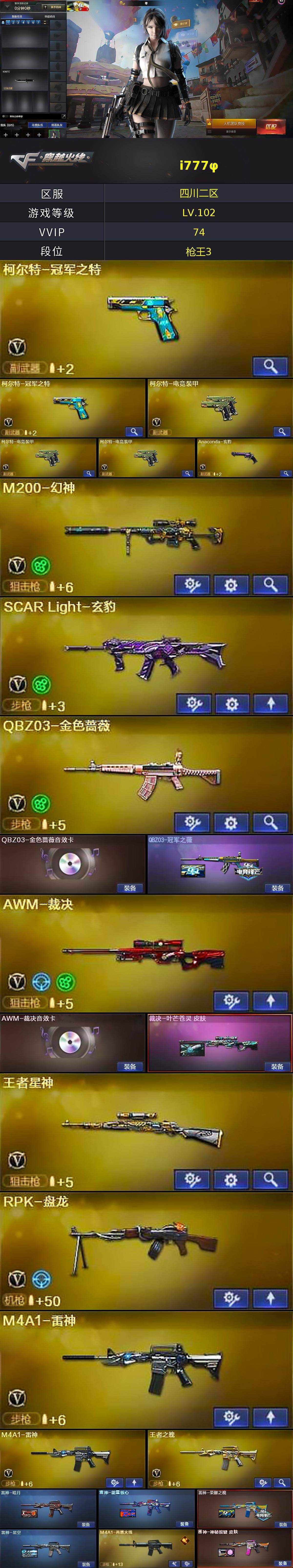 [16948545]四川二区-77V-3王者武器数-5炫金武器数
