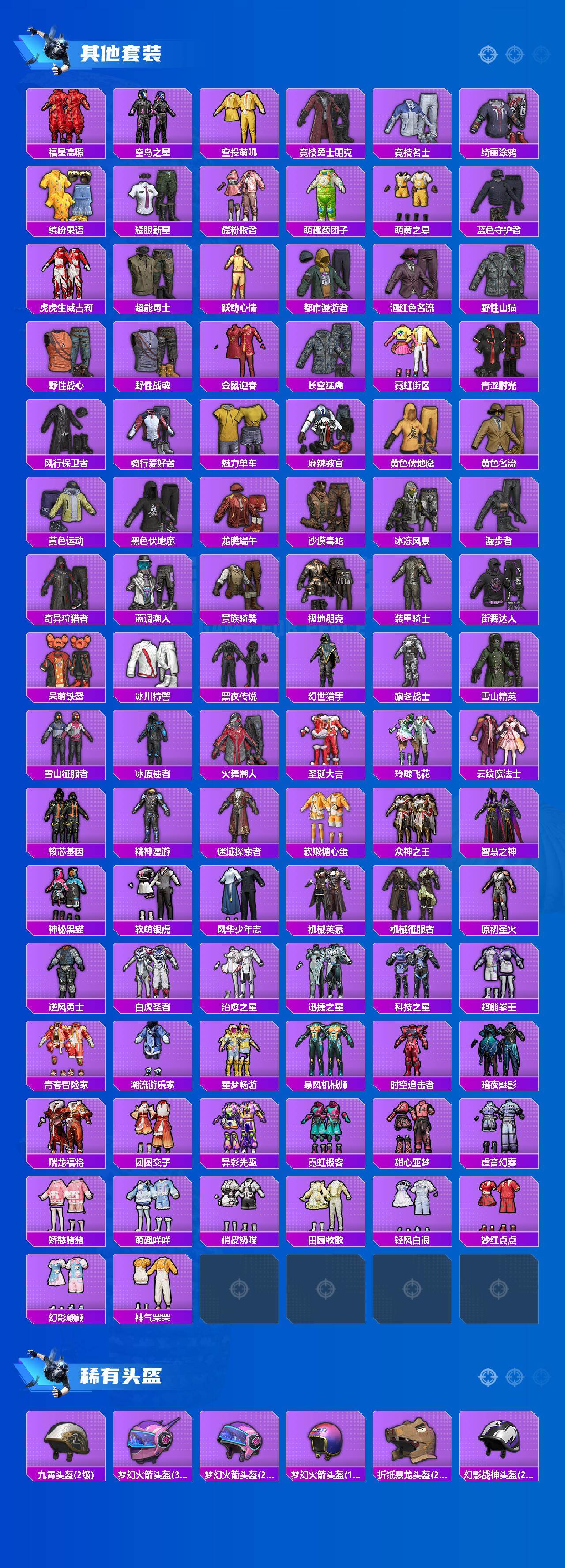 【稀有套装】:套装-小鸟芋圆,套装-粉恋花,套装-紫幽梦,套装-蓝冰羽,套装-霓虹热舞,套装-极速光影,套装-彩虹兔,套装-云朵鹅,套装-雪绒豹,套装-书海巡游,套装-画境星梦,套装-琴音绮想