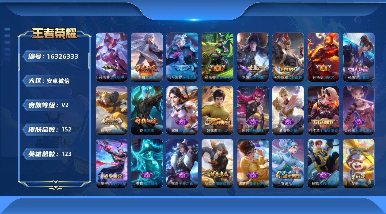 [16326333]【特价出售/店主推荐】安卓WX-V2-尊贵铂金III段位-123英雄-152皮肤-6传说-37史诗 【传说皮肤】:马可波罗深海之息,李信一念神魔,干将莫邪久胜战神,李白凤求凰,孙尚香末日机甲,孙悟空地狱火 【限定皮肤】:白起狰,狄仁杰阴阳师,赵云皇家上将,嬴政白昼王子,鲁班七号狮舞东方,庄周高山流水,高渐离玩趣恶龙,吕布猎兽之王,夏侯惇朔风刀,曹操烛龙,马可波罗深海之息,狄仁杰魔术师,狄仁杰万华元夜,达摩沙漠行僧,项羽海滩派对,老夫子醍醐杖,程咬金演武夺筹,兰陵王金庭之子,孙悟空至尊宝,孙悟空孙行者,牛魔御旌,李元芳云中旅人,钟馗神迹守卫,钟馗驱傩正仪,雅典娜黎明之约,蔡文姬繁星吟游,鬼谷子原初探秘者,铠青龙志,苏烈千军破阵,百里玄策原初追逐者,弈星混沌棋,梦奇顽趣,沈梦溪大漠名商,明世隐疑决卦,裴擒虎李小龙,裴擒虎擒涛扼浪,米莱狄御霄,盾山御銮,上官婉儿梁祝,鲁班大师探海日志,桑启海盐诗旅,张良古海寻踪,鬼谷子天穹祈灯 【年限皮肤】:李白凤求凰,铠青龙志 【赛季限定】:白起狰,曹操烛龙,米莱狄御霄,牛魔御旌,盾山御銮,夏侯惇朔风刀,弈星混沌棋,明世隐疑决卦,老夫子醍醐杖,鬼谷子原初探秘者,狄仁杰万华元夜,程咬金演武夺筹,钟馗驱傩正仪,苏烈千军破阵,达摩沙漠行僧,兰陵王金庭之子,沈梦溪大漠名商,李元芳云中旅人,桑启海盐诗旅,裴擒虎擒涛扼浪,鲁班大师探海日志,张良古海寻踪,鬼谷子天穹祈灯,东皇太一噬灭天穹,太乙真人谧流熔炉,百里玄策原初追逐者,雅典娜黎明之约,梦奇顽趣 【战令限定】:嬴政白昼王子,吕布猎兽之王,鲁班七号狮舞东方,钟馗神迹守卫,百里守约百相守梦,老夫子百相守梦 【史诗皮肤】:露娜紫霞仙子,阿轲暗夜猫娘,赵云皇家上将,赵云未来纪元,貂蝉圣诞恋歌,狄仁杰魔术师,廉颇地狱岩魂,宫本武藏鬼剑武藏,嬴政暗夜贵公子,墨子金属风暴,曹操幽灵船长,李白千年之狐,孙悟空至尊宝,花木兰水晶猎龙者,刘邦德古拉伯爵,小乔缤纷独角兽,兰陵王暗隐猎兽者,诸葛亮黄金分割率,亚瑟心灵战警,程咬金功夫厨神,阿轲节奏热浪,嬴政白昼王子,铠青龙志,鲁班七号狮舞东方,狄仁杰鹰眼统帅,公孙离无限星赏官,上官婉儿梁祝,蔡文姬繁星吟游,百里玄策原初追逐者,裴擒虎李小龙,杨戬天秀启明,孙悟空孙行者,庄周高山流水,雅典娜黎明之约,夏洛特永昼,梦奇顽趣,百里守约百相守梦 【其他皮肤】:项羽海滩派对,韩信