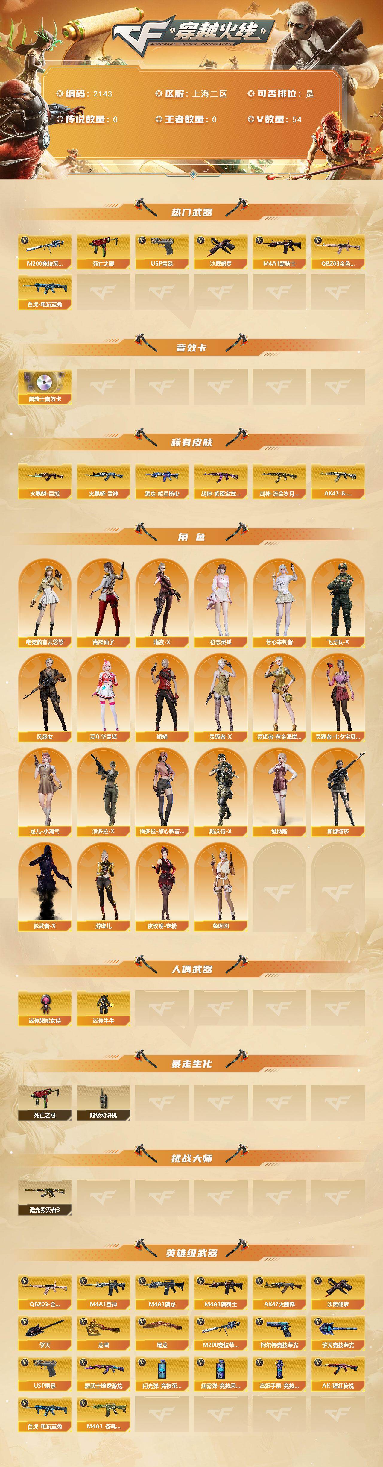 [16951673]上海二区-54V-0王者武器数-0炫金武器数