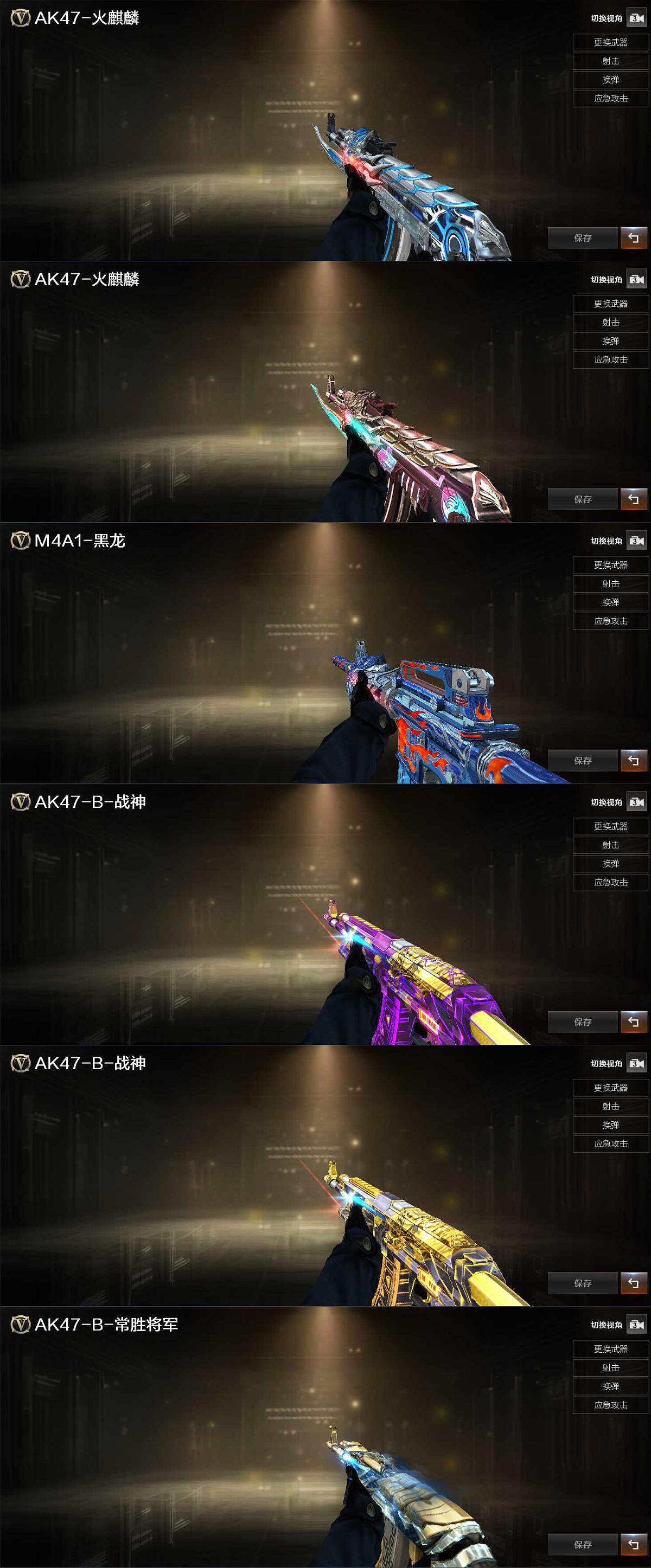 【皮肤】:火麒麟-雷神,火麒麟-百城,黑龙-能量核心,战神-紫绶金章皮肤,战神-流金岁月皮肤,AK47-B-常胜将军-刘备