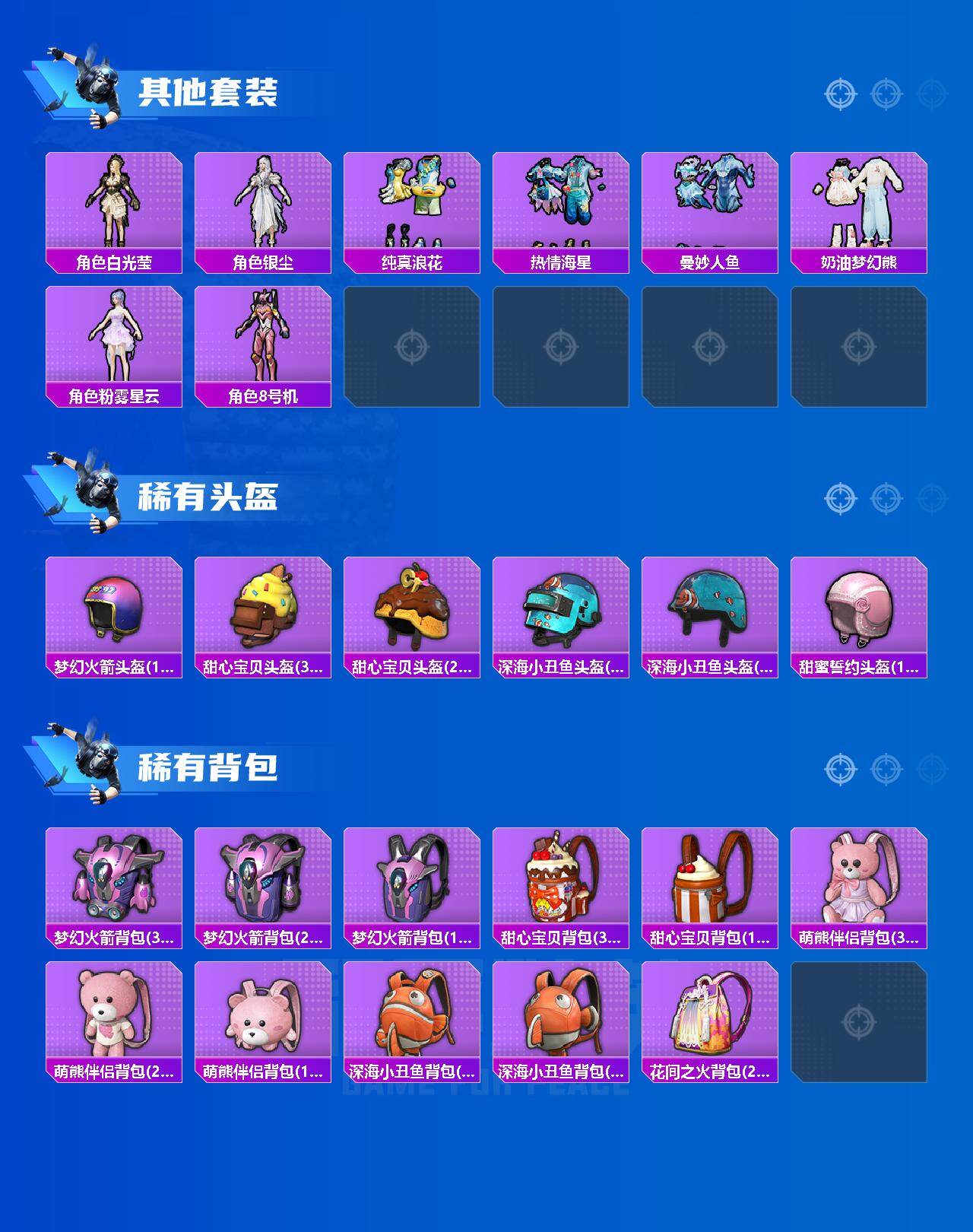 套装-怪诞乔克,套装-梦幻火箭,套装-缤纷油彩,套装-赤蝎幽灵,套装-都市猎人,套装-冥河战士,套装-奇异狩猎者,套装-胖达团团,套装-胖达圆圆,套装-极限特训,套装-未来战士,套装-南瓜骑士,套装-宝贝奶油派,套装-天使彩虹糖,套装-智能音符,套装-放客神游,套装-花间之火,套装-绚金战神,套装-炙焰红王,套装-馨动时刻,套装-蜜桃特工,角色-洛天依,岚岚物语套装,套装-炙焰牛王,套装-傲雪凌霜,套装-彩虹甜喵,套装-旋转彩虹,套装-冰川粉黛,套装-冰川幽秘,套装-冰川红玫,套装-仲夏莫吉托,角色-白勺歌姬,角色-呆萌星弥,角色-小可学妹,角色-圣堂之誓,角色-小叽联名款,玩偶服-猪猪侠,角色-烟云彩露,角色-觉醒初号机,套装-雪月幻音,套装-鹰眼刺客,套装-迅捷狂鲨,套装-东方飞龙,兔兔白日梦套装