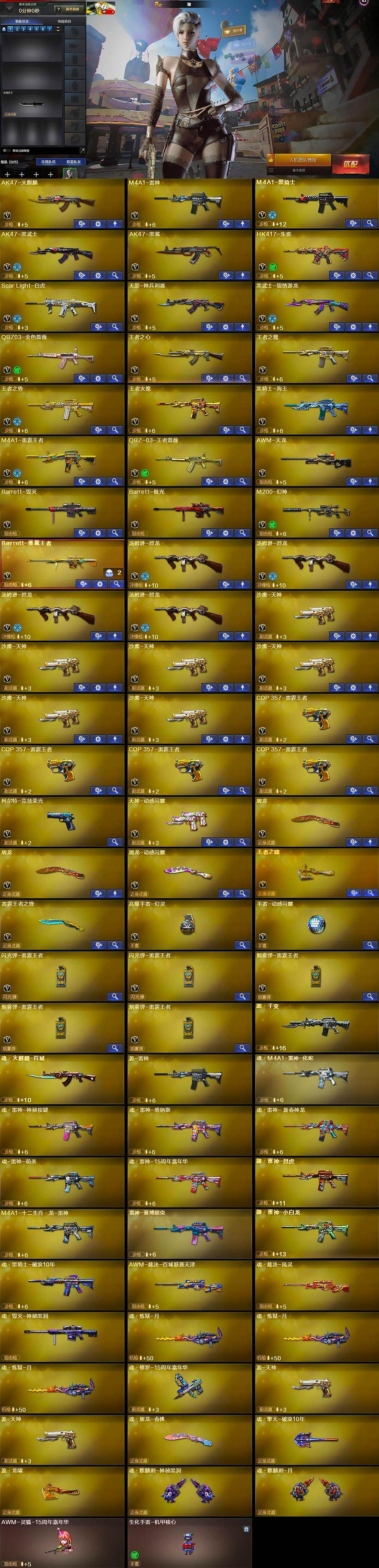 - [16408485]陕西一区-55V-2王者-1炫金 【热门武器】:QBZ03-金色蔷薇,M200-幻神,金色蔷薇-古蛇迷踪,修罗-古蛇迷踪,M200-竞技荣光,白虎-电玩蓝兔,Kar98K-星神,USP-雷暴,COP 357-幻灵,沙鹰-修罗,Knife-冠军之刃 【王者炫金武器】:炫金毁灭 【音效卡】:屠龙-动感闪耀 音效卡,天神-动感闪耀 音效卡,烈火-动感闪耀 音效卡,烈龙-云海游龙音效卡,擎天-云海游龙音效卡,屠龙-云海游龙音效卡,Kar98K-星神音效卡 【皮肤】:幻神-冠军之幻,幻神-星耀 皮肤,金色蔷薇-纸灯龙皮肤,QBZ03-巅峰荣耀皮肤,雷神-暗月,雷神-维纳斯皮肤,M4A1-雷神-巅峰荣耀皮肤,雷神-源计划2.0专属 皮肤,火麒麟-雷神*2,火麒麟-战神关羽,火麒麟-心动糖果,黑骑士-AG-S4冠军典藏,战神-紫绶金章皮肤,战神-流金岁月皮肤,龙啸-纸灯龙皮肤 【角色】:鹰,星际战将,王者影豹,蛇隐宗,奇洋探员,乔伊教练,云海玲珑,暗夜-X,飞虎队-X,风暴女,嘉年华灵狐,兰-新年限定,灵狐者-X,曼陀罗-X,潘多拉-X,青霞仙子,蛇姬,斯沃特-X,新娜塔莎,游珑儿 【人偶武器】:AWM-灵狐-15周年嘉年华,海滩汪汪-巴雷特,迷你牛魔王,夺魂,迷你火种,迷你艾比,迷你超能女侍 【暴走生化】:黑龙吞噬者 【挑战大师】:冰龙粉碎者-白马银枪,试炼破坏者III,神圣爆裂者-末日III 【英雄级武器】:AK47-火麒麟,M4A1-雷神,AN94-超新星,无影-神兵利器,黑武士-锦绣游龙,超新星-热带奇洋,金色蔷薇-古蛇迷踪,QBZ03-金色蔷薇,烈火-动感闪耀,AK-47-猩红传说,AK47-B-战神*2,白虎-电玩蓝兔,Barrett-毁灭,M200-幻神,Kar98K-星神,M200-竞技荣光,烈龙-云海游龙,沙鹰-修罗,USP-雷暴,COP 357-幻灵,柯尔特-竞技荣光,天神-动感闪耀,修罗-古蛇迷踪,龙啸,幻灵之锋,擎天-竞技荣光,屠龙-动感闪耀,擎天-云海游龙,龙啸-热带奇洋,屠龙-云海游龙,高爆手雷-幻灵*5,高爆手雷-竞技荣光*2,手雷-动感闪耀,手雷-云海游龙,手雷-热带奇洋,高爆手雷-古蛇迷踪,闪光弹-幻灵*4,闪光弹-竞技荣光*3,烟雾弹-幻灵*4,烟雾弹-竞技荣光*3,烟雾弹-古蛇迷踪,烟雾弹-雷霆王者-觉醒版*2,M4A1-赤狱骑士 【道具】