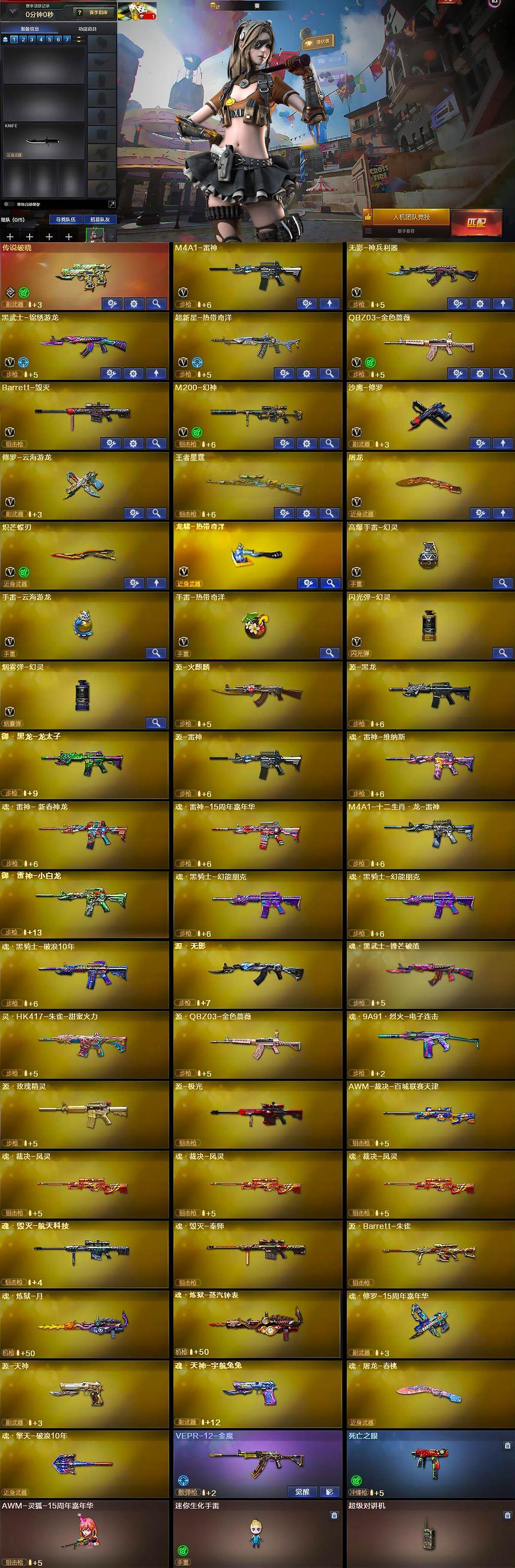 - [16996217]19m总资产-1246k哈伏币-60烽火等级-铂金-11战场等级-列兵 【干员外观】:红狼-蚀金玫瑰,无名-夜鹰,深蓝-不破誓约,红狼-电锯惊魂 【近战皮肤】:近战-北极星,近战-黑鹰 【传说外观】:M4A1突击步枪-蚀金玫瑰,M4A1突击步枪-阿米娅,ASh-12战斗步枪-鹅鸭杀,SG552突击步枪-运动员,AK-12突击步枪-夜鹰,AK-12突击步枪-特斯拉线圈,SCAR-H战斗步枪-启航,G3战斗步枪-骑士,CAR-15突击步枪-黑鹰坠落,K437突击步枪-北极星,KC17突击步枪-电锯惊魂,Vector冲锋枪-能天使-午夜邮差,UZI冲锋枪-特斯拉线圈,SMG-45冲锋枪-骑士,SR-3M紧凑突击步枪-特斯拉线圈,勇士冲锋枪-能天使-午夜邮差,QCQ171冲锋枪-北极星,QCQ171冲锋枪-鹅鸭杀,M250通用机枪-骑士之心,QJB201轻机枪-鹅鸭杀,M14射手步枪-电锯惊魂 【史诗外观】:AKM突击步枪-林中猎手,ASh-12战斗步枪-守夜人,ASh-12战斗步枪-无极限,AUG突击步枪-蝮蛇,SG552突击步枪-尖端治疗,SG552突击步枪-深海恐惧,SCAR-H战斗步枪-囚徒,AS Val突击步枪-尖端治疗,AS Val突击步枪-百步穿杨,腾龙突击步枪-猎鳄行动,K437突击步枪-守护者,MP5冲锋枪-深海恐惧,MP5冲锋枪-战术竞备,Vector冲锋枪-阿萨拉文明,Vector冲锋枪-异域战争,SR-3M紧凑突击步枪-战术竞备,勇士冲锋枪-工业狂潮,MP7冲锋枪-守护者,M1014霰弹枪-林中猎手,S12K霰弹枪-曙光,PKM通用机枪-蝮蛇,PKM通用机枪-守夜人,M250通用机枪-囚徒,Mini-14射手步枪-守护者,SVD狙击步枪-阿萨拉工艺,M14射手步枪-黑鹰坠落,SR-25射手步枪-尖端治疗,SR-25射手步枪-聚光灯,SV-98狙击步枪-囚徒,M700狙击步枪-守夜人,AWM狙击步枪-无极限,.357左轮-幸运时刻,复合弓-守护者 【稀有外观】:PKM通用机枪-极地勘察队,AKM突击步枪-战术演练,QBZ95-1突击步枪-公平竞技,K416突击步枪-黑骑士,M16A4突击步枪-远航,M7战斗步枪-捣蛋鬼,SCAR-H战斗步枪-童趣,SCAR-H战斗步枪-远航,SCAR-H战斗步枪-荣耀列队,SCAR-H战斗步枪-黄昏,G3战斗步枪-战