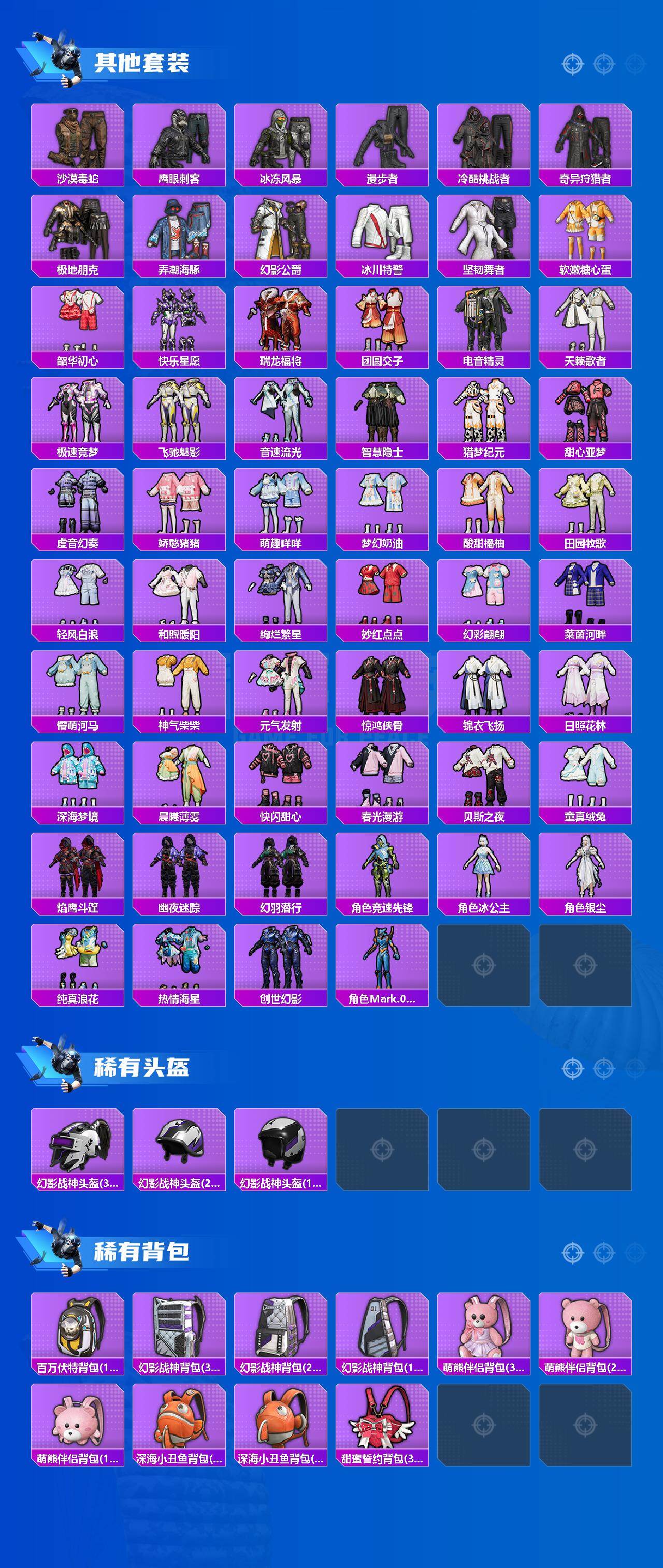 - [16580540]广东一区-39V-0王者-0炫金 【热门武器】:G36C-幻影,白虎-电玩蓝兔,QBZ03-街机,Kar98K-星神,C.A.T,金色蔷薇-空,羊驼玩偶 【音效卡】:Kar98K-星神音效卡,炼狱-百战金芒-庆典舞曲音效卡,死神-雪域霜狐-怀旧音效卡 【皮肤】:裁决-流光秘银,M4A1-再燃火线,轻型军用手斧-再燃火线 【角色】:隼,战地猎狐,雪域霜狐,蛇隐宗,嘉年华灵狐,娟娟,灵狐者-X,潘多拉-X,蛇姬,斯沃特-X 【人偶武器】:金色蔷薇-空,AWM-灵狐-15周年嘉年华,C.A.T,迷你波特博士,AK47-斯沃特,M200-夜玫瑰 【暴走生化】:超级对讲机 【挑战大师】:冰龙粉碎者-白马银枪 【英雄级武器】:AK47-火麒麟,M4A1-黑龙,无影-神兵利器,G36C-幻影,死神-雪域霜狐,白虎-电玩蓝兔,AWM-裁决,Kar98K-星神,炼狱-百战金芒,沙鹰-天神*2,屠龙*2,麒麟刺,擎天-竞技荣光,麒麟刺-百战金芒,高爆手雷-竞技荣光*3,高爆手雷-神工天巧,闪光弹-竞技荣光*5,烟雾弹-竞技荣光*4,烟雾弹-古蛇迷踪,M4A1-赤狱骑士,M4A1-苍鸣雷神,AWM-昌龙 【道具】:云山科技背包,全能枪王背包,百战金芒炫彩背包,超级背包,雪域霜狐炫彩背包,女皇终结者-魔龙之吻,救世主-黑桃战神,黄金生化钩,绿色巨人,灵魂忍者,变异宝贝,迷雾幽灵,夺命之镰,防化服*3,金色流光-枪王排位*2,星辰流光-枪王排位,枪王排位28赛季金色流光,枪王排位29赛季金色流光,语音特效-盛典烟火,语音特效-怀旧,雪域霜狐表情,萌萌小葵表情,动感闪耀表情,防弹头盔*4,防弹衣*4,C4工具钳*4,手雷包*4 【特殊枪械】: