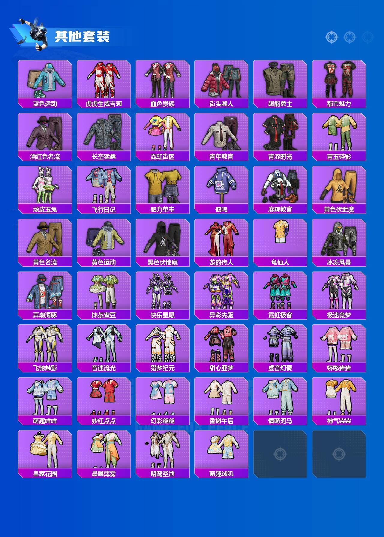 【稀有套装】:套装-龟仙人,套装-巳巳如意,套装-圣穹绘梦,套装-超能元气,套装-雪国风尚,套装-炫彩糖果,套装-粉恋花,套装-紫幽梦,套装-蓝冰羽,套装-星渊小夜曲,玩偶服-美羊羊,角色-绯色魅影,角色-紫俏灵猫