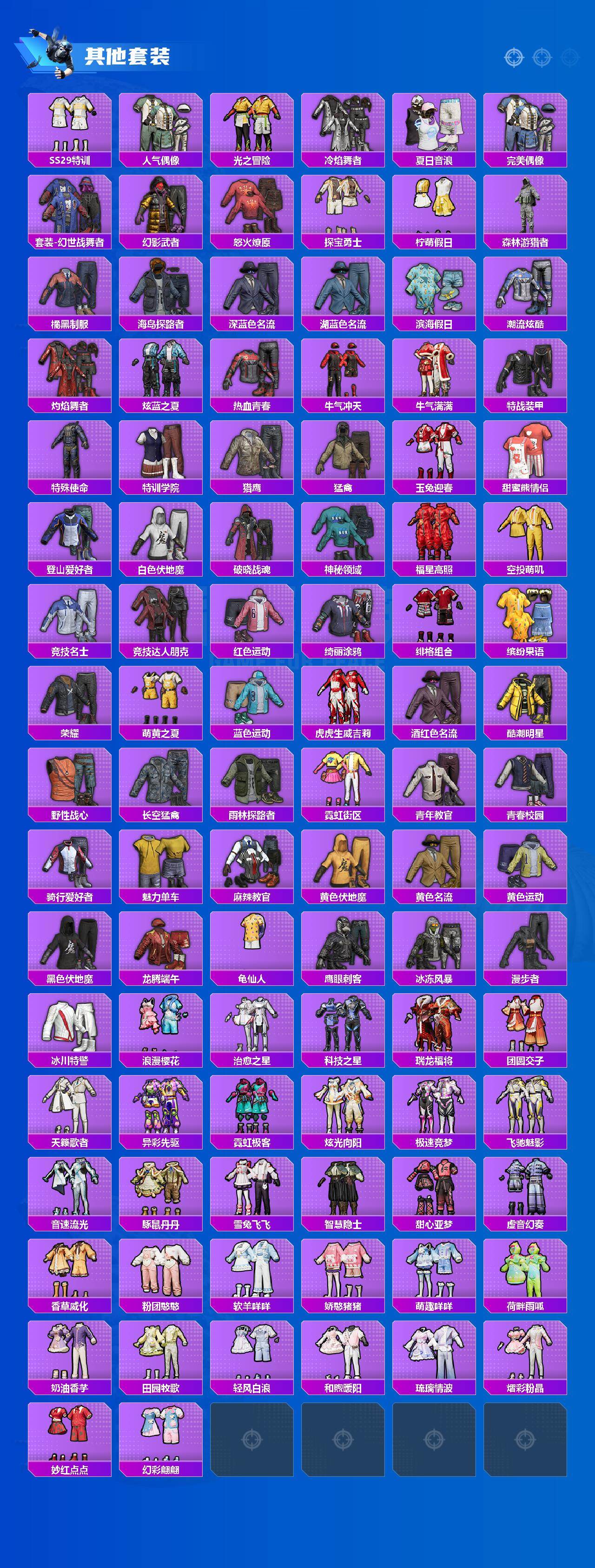 套装-梦幻火箭,套装-缤纷油彩,套装-都市猎人,套装-宝贝奶油派,套装-金属狂野,套装-碧影闪光,角色-复仇流浪者,套装-霁雪冰心,套装-冰川红玫,套装-仲夏莫吉托,套装-鹰眼刺客