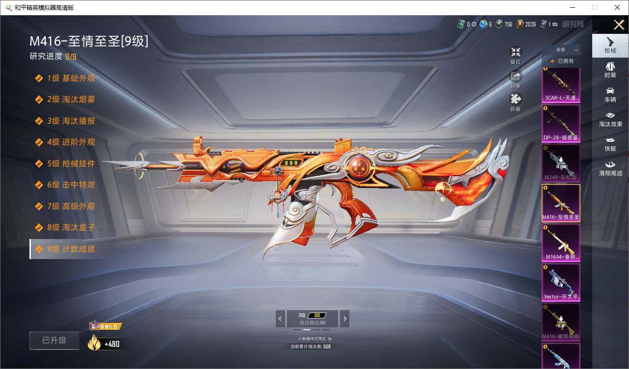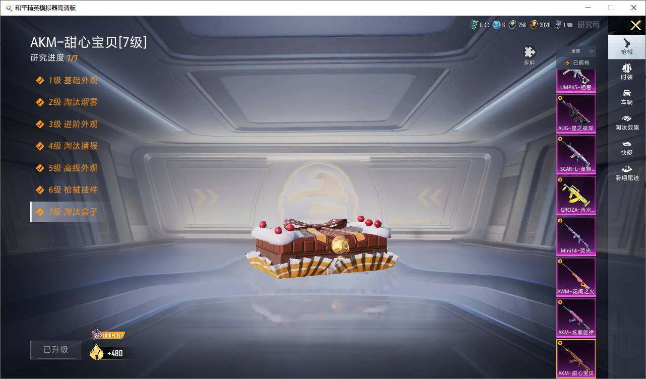 AKM-奇异狩猎者,AKM-缤纷海域,M416-快乐主宰,M762-奇异狩猎者,M762-瑞龙福将,M24-香水柠檬,M24-奇异狩猎者,S686-奇异狩猎者