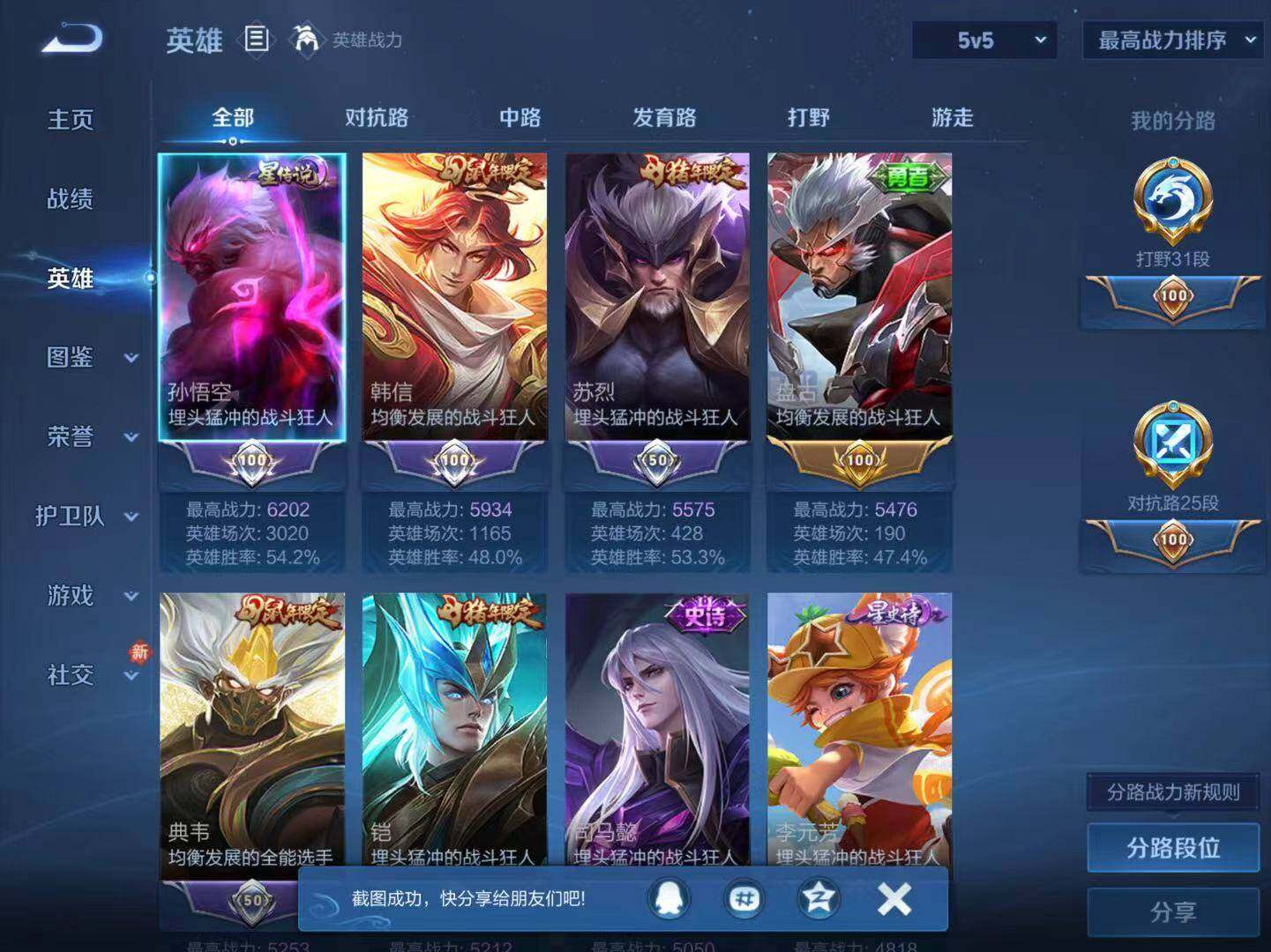 - [11949466]V6 1珍品传说 7传说 124英雄 174皮肤 可修改实名 优质装备:朽木白哉,李逍遥,妄想实况,惊梅引,澜逐花归海 传说皮:典韦战鼓燎原,落雪白狼 珍宝阁皮:妄想食味,胡桃夹子 限定皮:鸣野蒿,至美·乘鲤谣,遇见飞天,五谷丰年,梁祝,李小龙 史诗皮:赞萌露比,茶境仙,化蝶舞,鸭鸭历险记-刘禅,龙之律动,幻珠鲛人,百相守梦-黄忠,紫霞仙子,黄金分割率,末日机甲-吕布,猫狗日记-孙策,乱世虎臣,女仆咖啡,摇滚巨星,水果甜心,星夜王子,德古拉伯爵,鬼剑武藏,心灵战警,天秀·启明,地狱岩魂,缤纷独角兽,逐浪之夏,金属风暴,原初追逐者,圣诞恋歌,鹰眼统帅,魅力维加斯,无心