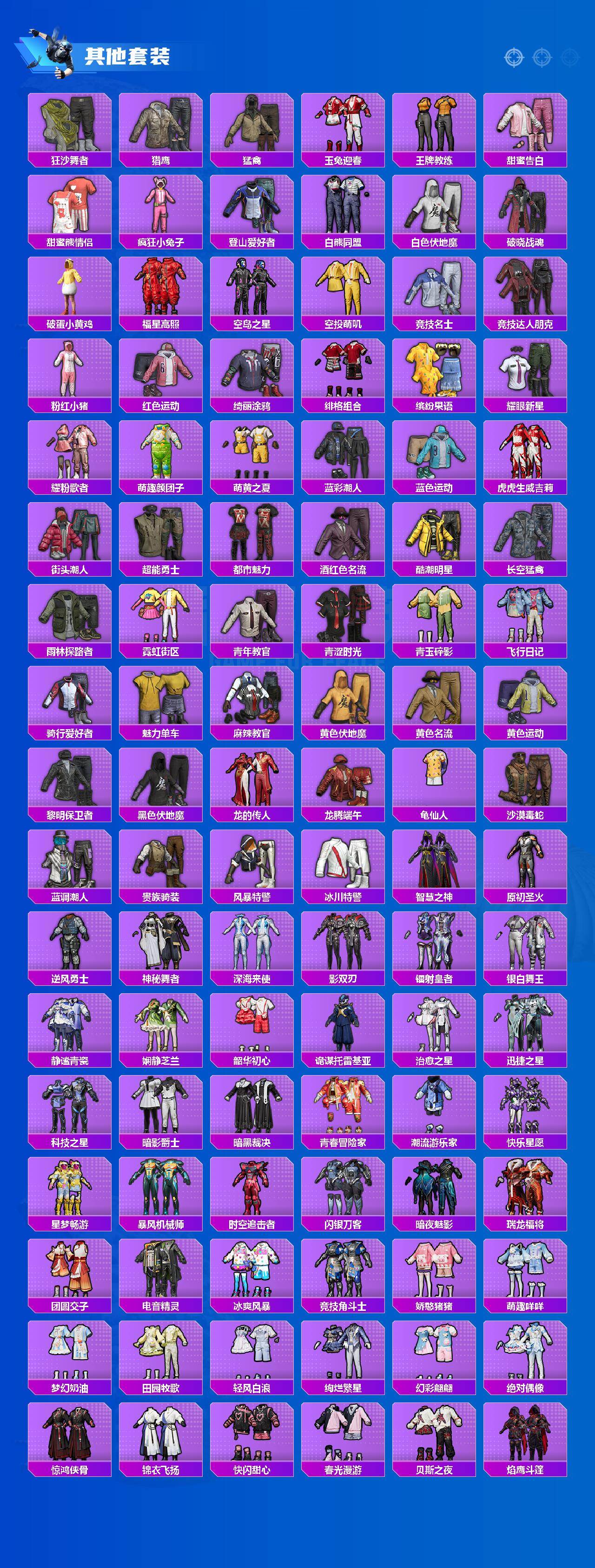 【稀有套装】:套装-龟仙人,套装-巳巳如意,角色-超感刻度,套装-雪国风尚,套装-炫彩糖果,套装-雏菊兔兔,套装-萝兰蝴蝶,套装-糖糖葫芦,套装-青团波波,角色-俏兔智灵,套装-燕燕于飞,套装-鱼渊荷华,套装-旋风灵鼠,角色-蜜桃派对,套装-霓虹热舞,套装-彩虹兔,套装-云朵鹅,套装-雪绒豹,套装-朱霞炽焰,套装-凌霄紫焰,套装-擎苍青焰,角色-绯色魅影,套装-书海巡游,套装-画境星梦,套装-琴音绮想