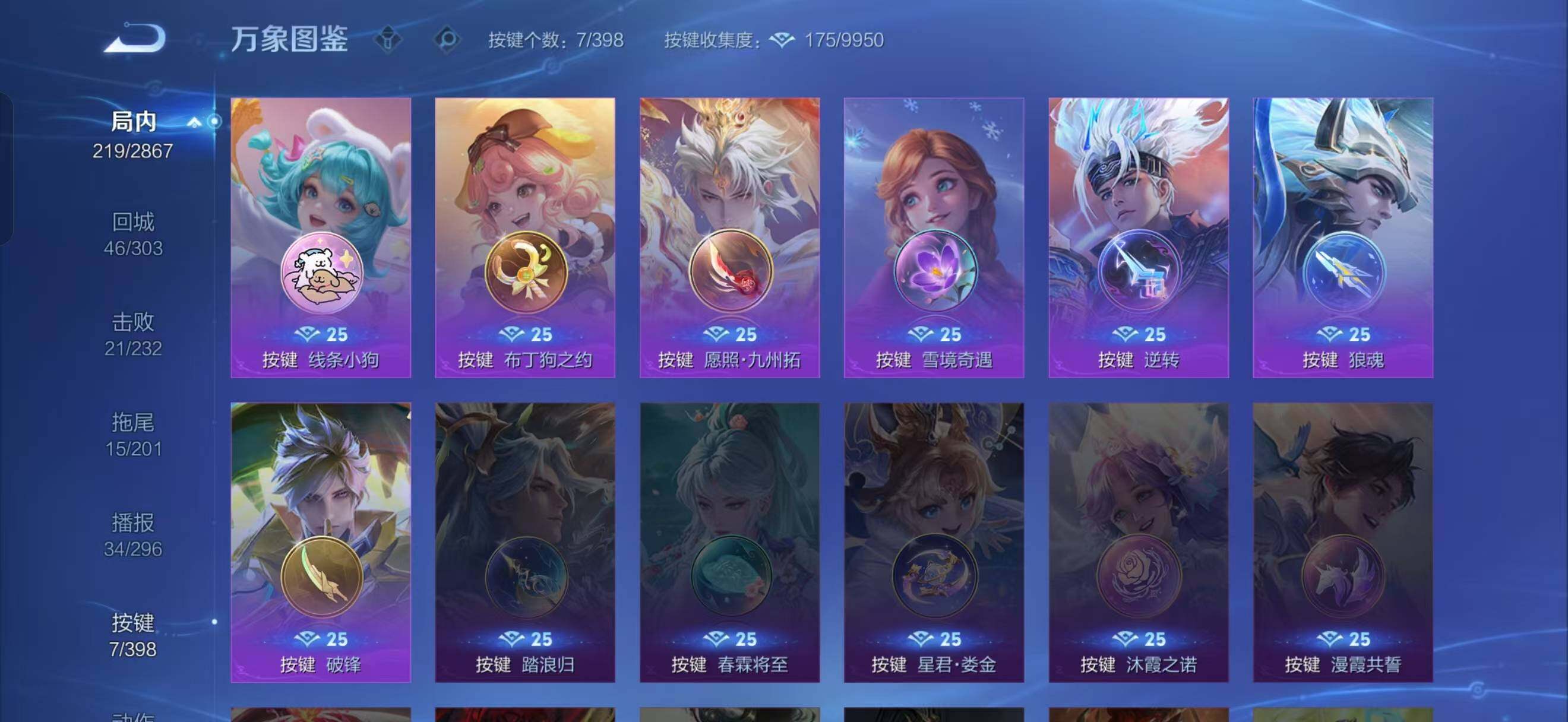 裴擒虎李小龙,张飞虎魄,马超神威,马可波罗逐梦之星,韩信逐梦之影,铠青龙志,百里玄策白虎志,孙悟空大圣娶亲,孙悟空至尊宝,孙悟空美猴王,云中君时之祈愿,马可波罗山海·玄木吟,桑启鸣野蒿,澜愿照·九州拓,司空震愿照·山河定